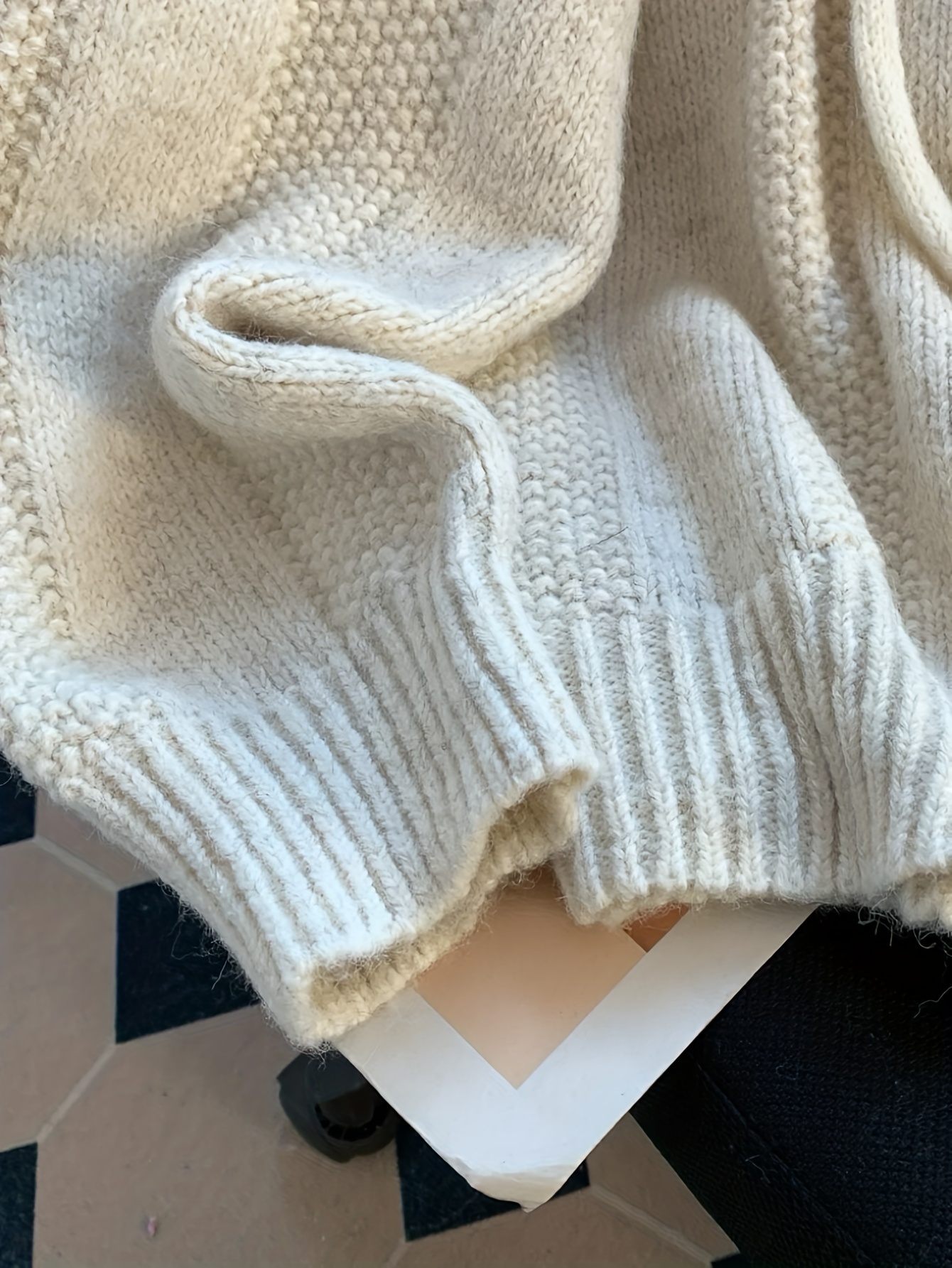 Beige Women's Oversized Soft Sweater Coat - Long Sleeve Hooded Sweater Jacket with Adjustable Hood & Front Pocket, Minimalist Winter Coat, Machine Washable Casual to Formal Outerwear for Women, All-Season Layering Piece, Cropped Sweaters for Women, Casual Long Sleeve Sweater, Sweaters, Colourfull Loose Sweater for Women, Sweater Tops for Women