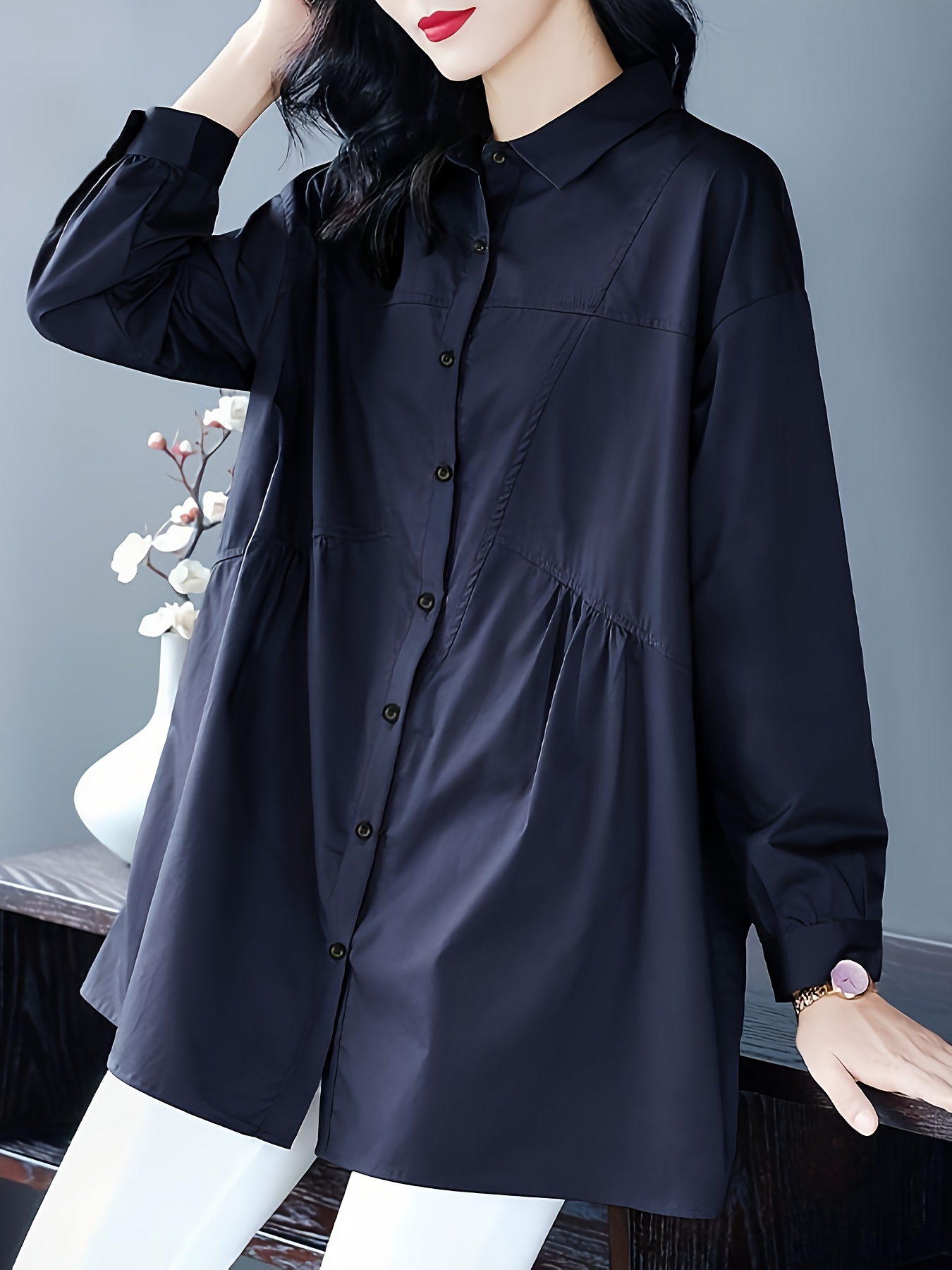 Plus Size - Plus Size, Long Sleeve High-End Shirt for Women, Plus Size Women'S Casual Loose Fit Blouse, Long Sleeve Blouses for Women Plus Size, Plus Size Blouses, Blouses for Women Plus Size, Long Sleeve Blouses for Women, Spring Fashion, Office Wear, Elegant Blouse, Classic Design, Durable Construction, Premium Material, Buttonup Top, Stylish Blouse, Fashion Lovers, Professional Women