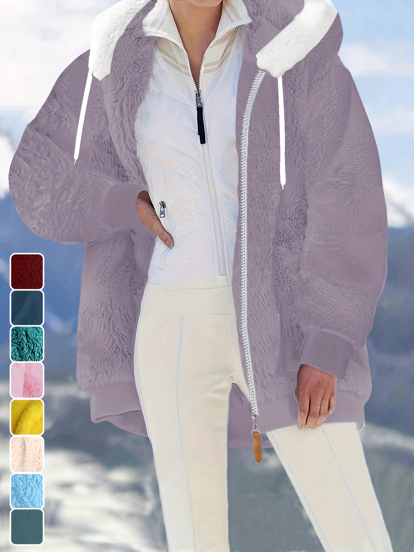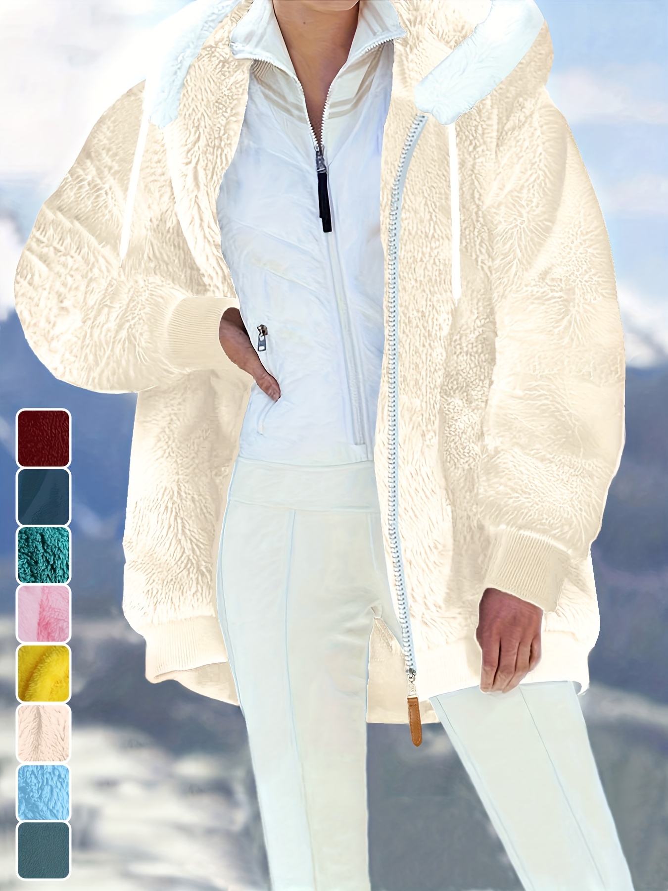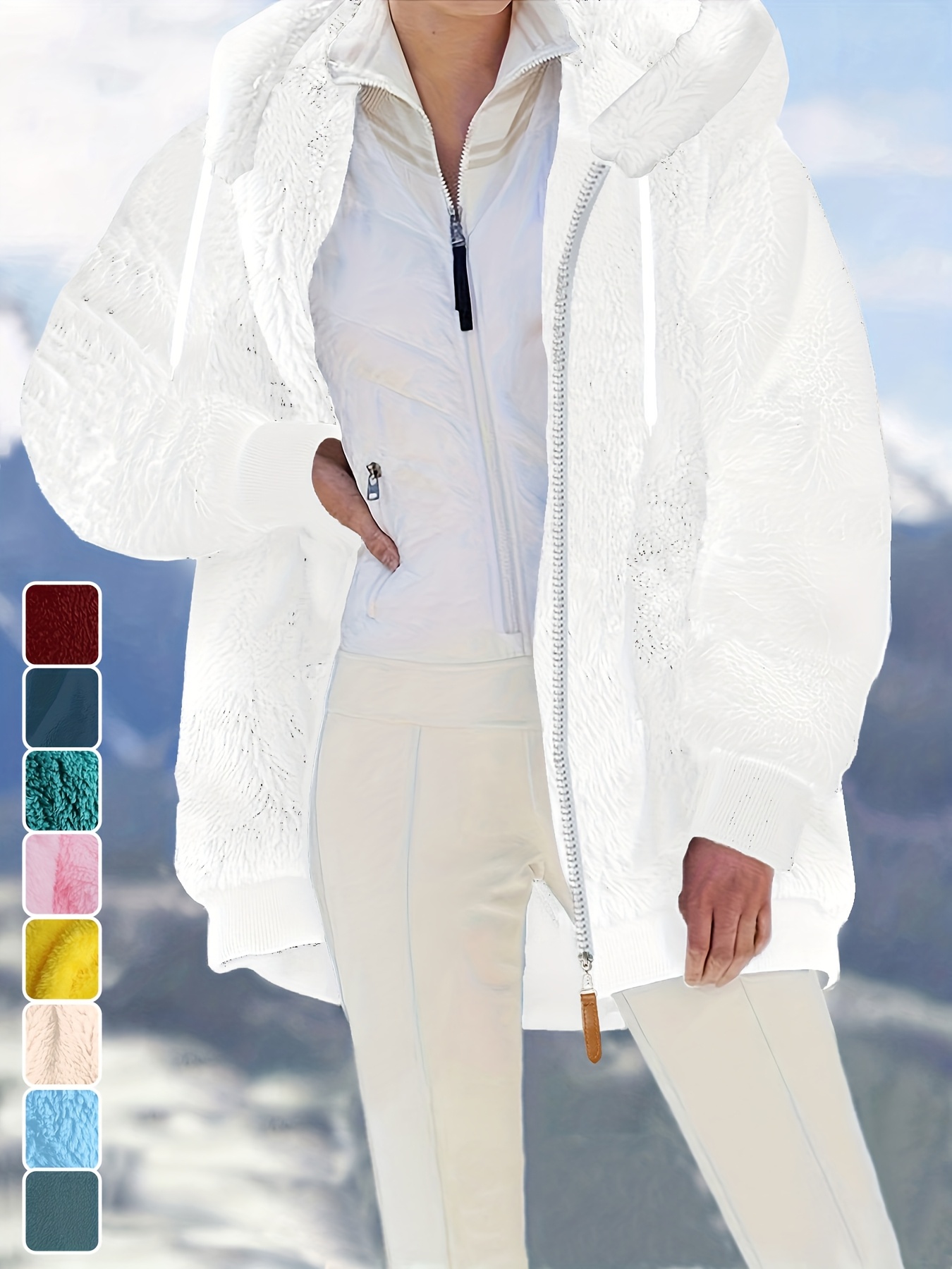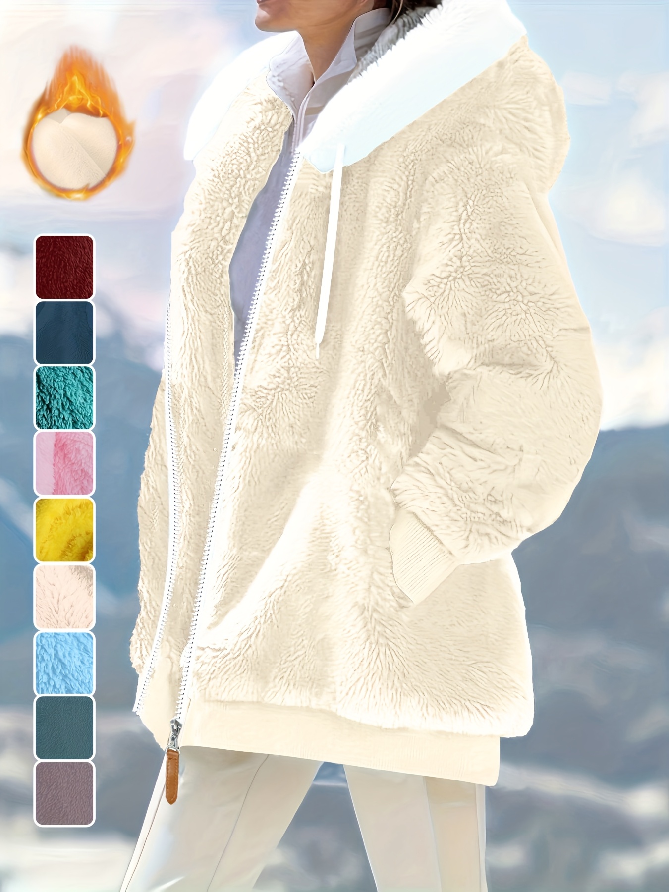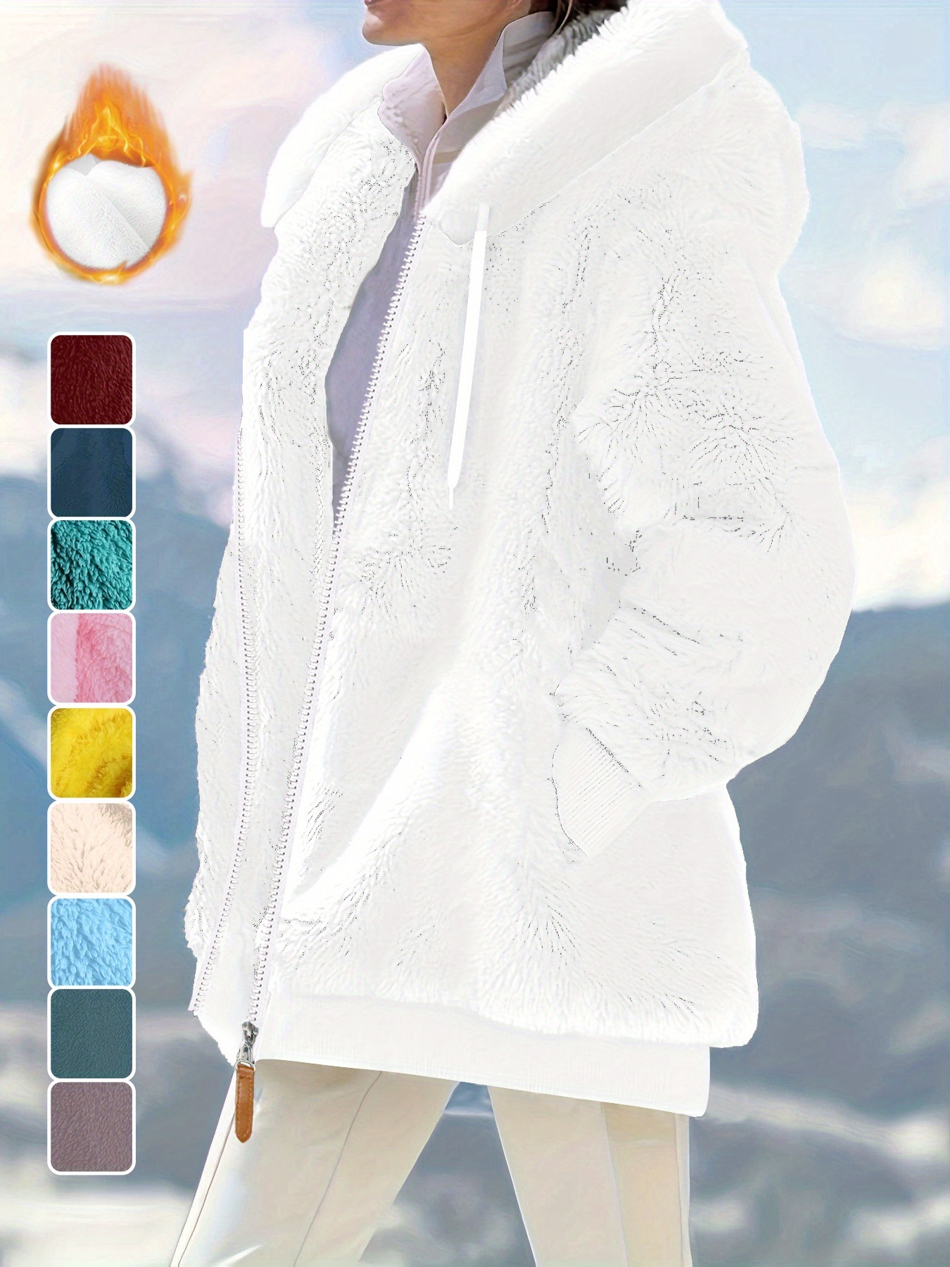 Plus Size - Women'S Cozy Fleece-Lined Hooded Jacket - Oversized Zip-Up with Drawstring, White, All-Season Comfort, Casual Style, Casual Winter Wear | Oversized Hooded Jacket | Zippered Hoodie, Winter Hoodie
