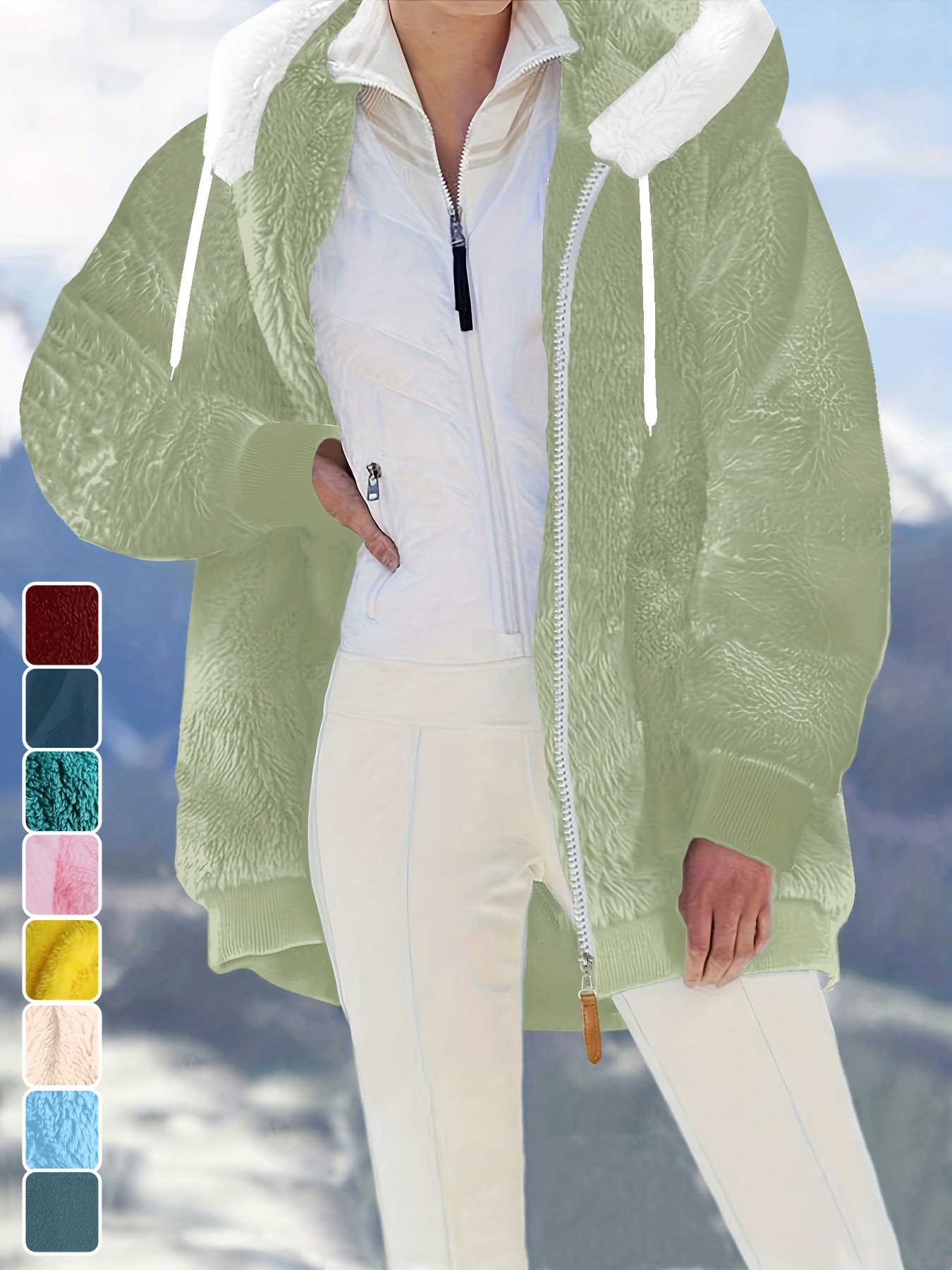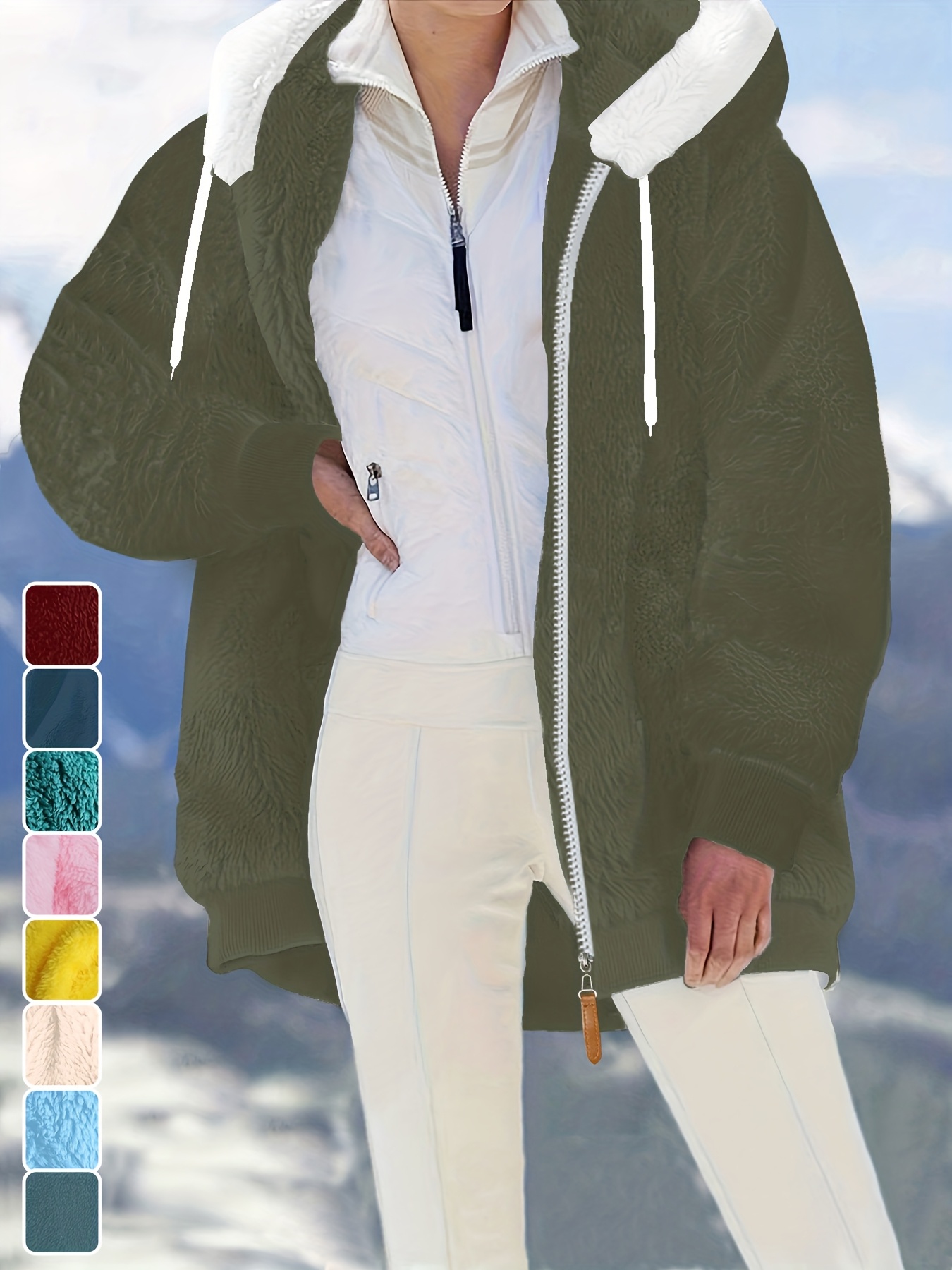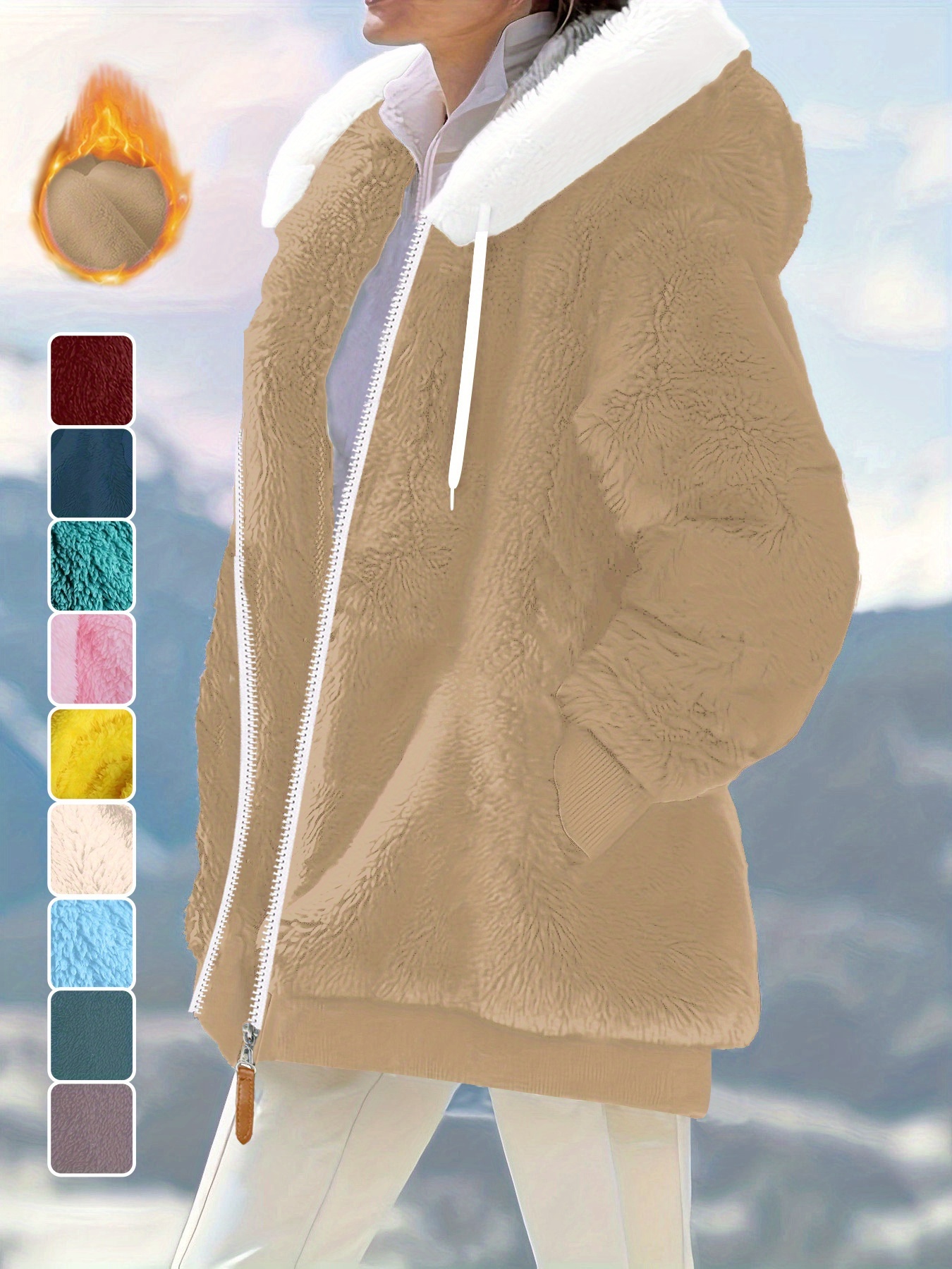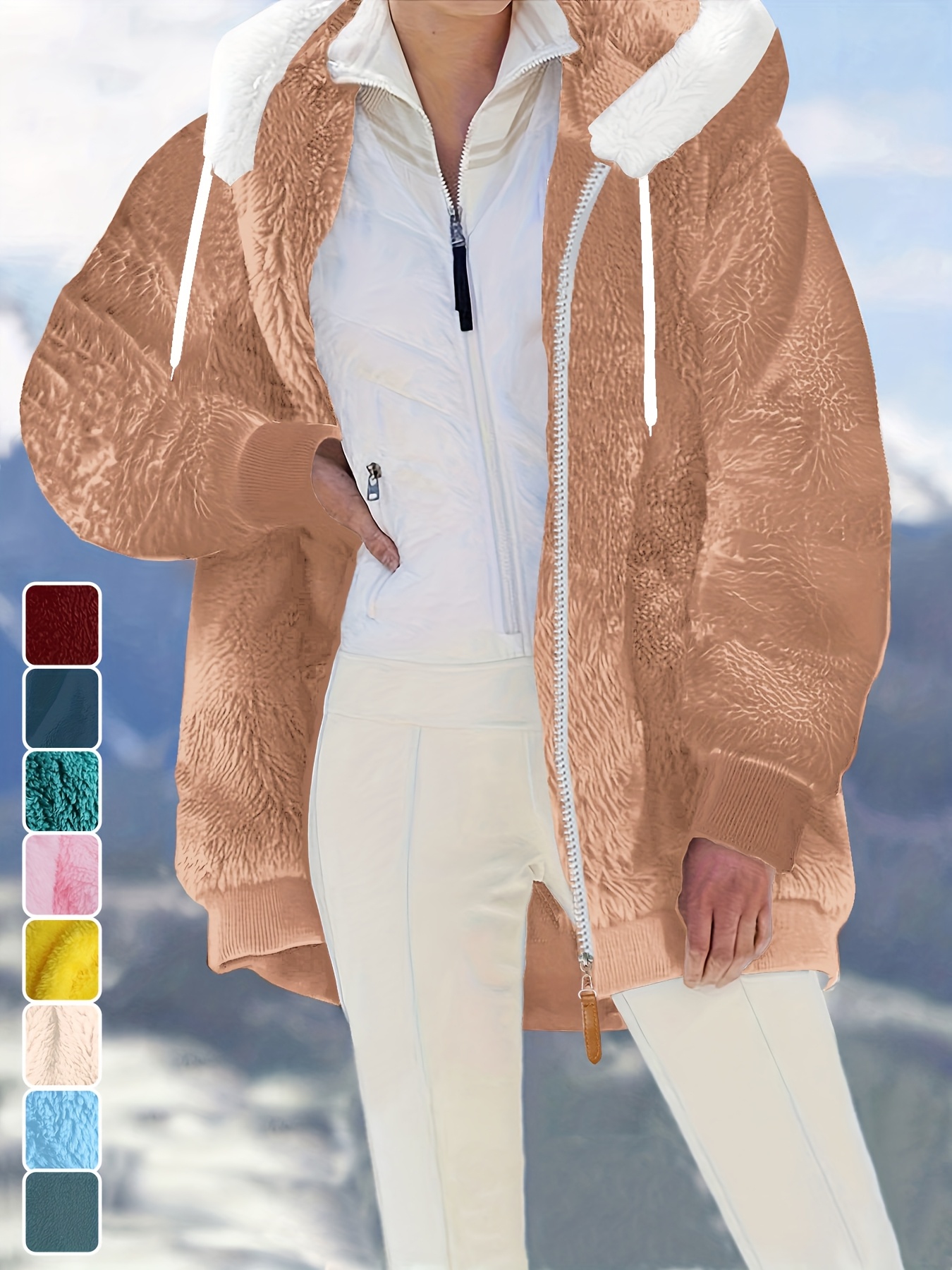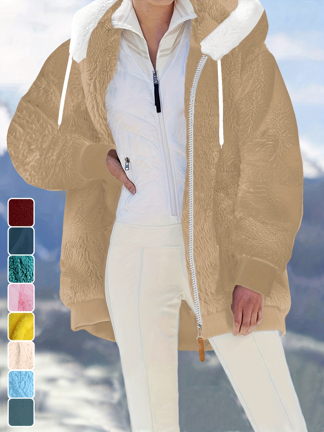 Plus Size - Women'S Cozy Fleece-Lined Hooded Jacket - Oversized Zip-Up with Drawstring, White, All-Season Comfort, Casual Style, Casual Winter Wear | Oversized Hooded Jacket | Zippered Hoodie, Winter Hoodie
