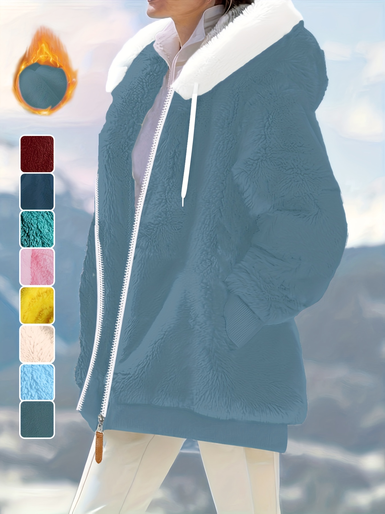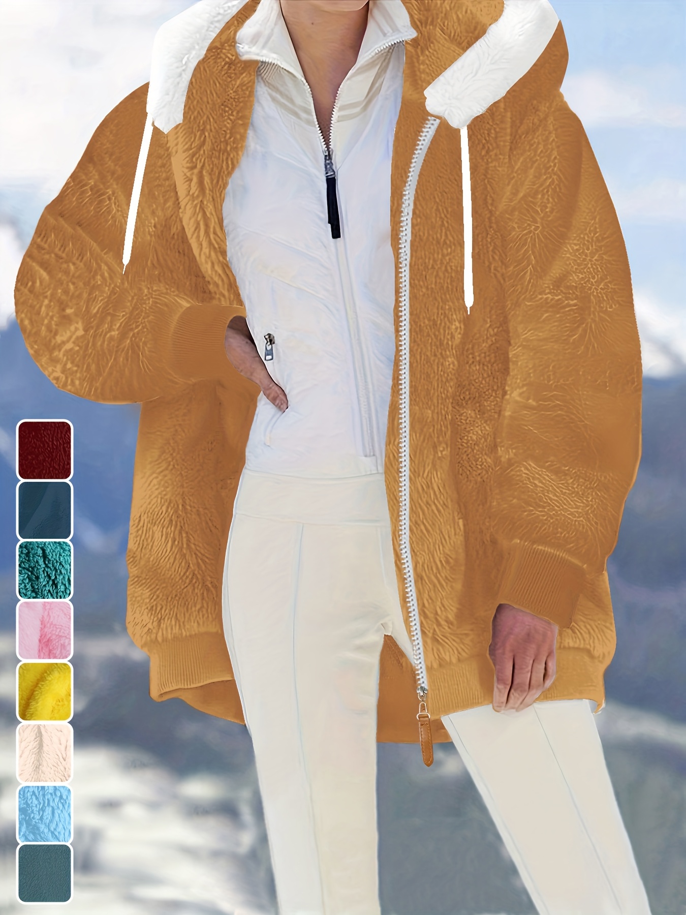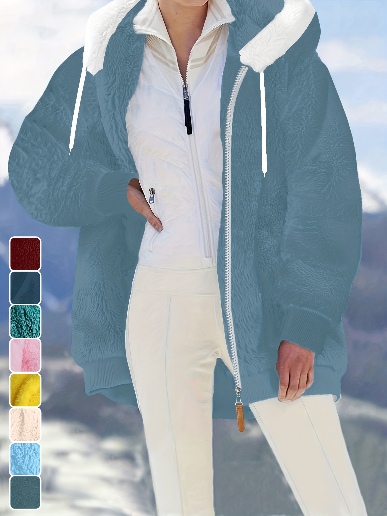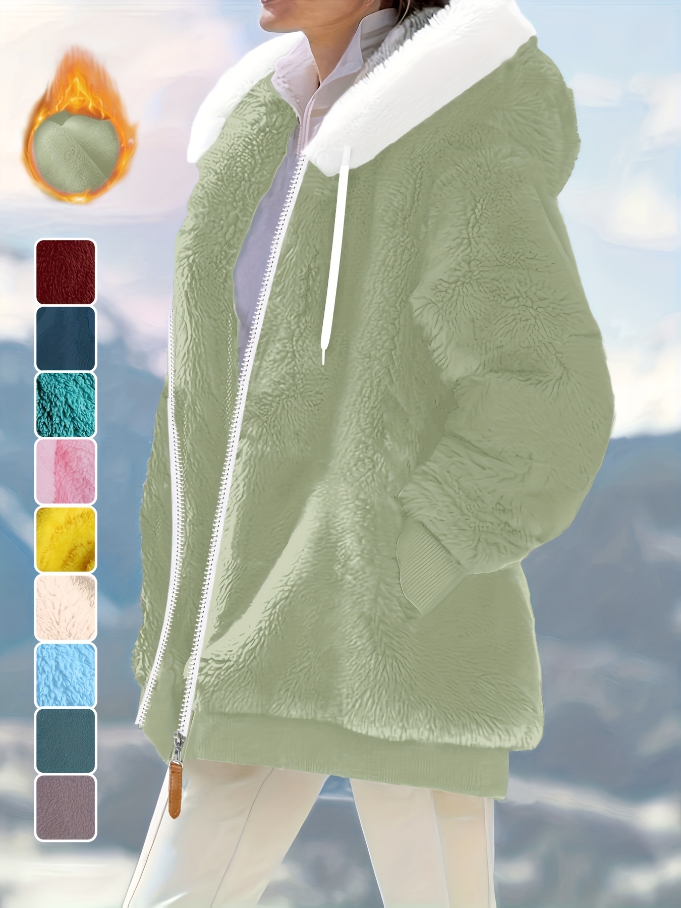 Plus Size - Women'S Cozy Fleece-Lined Hooded Jacket - Oversized Zip-Up with Drawstring, White, All-Season Comfort, Casual Style, Casual Winter Wear | Oversized Hooded Jacket | Zippered Hoodie, Winter Hoodie