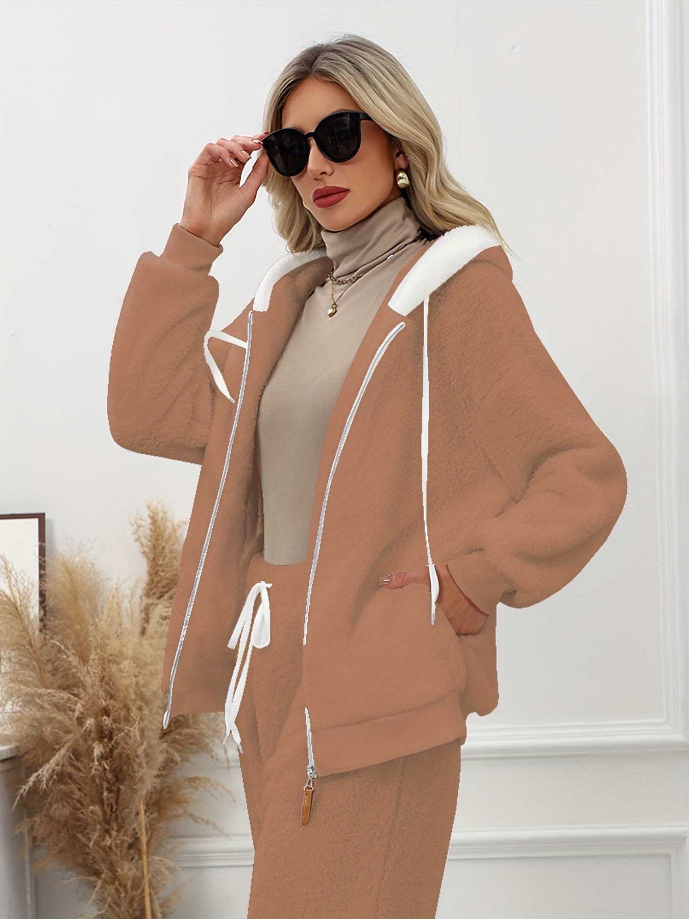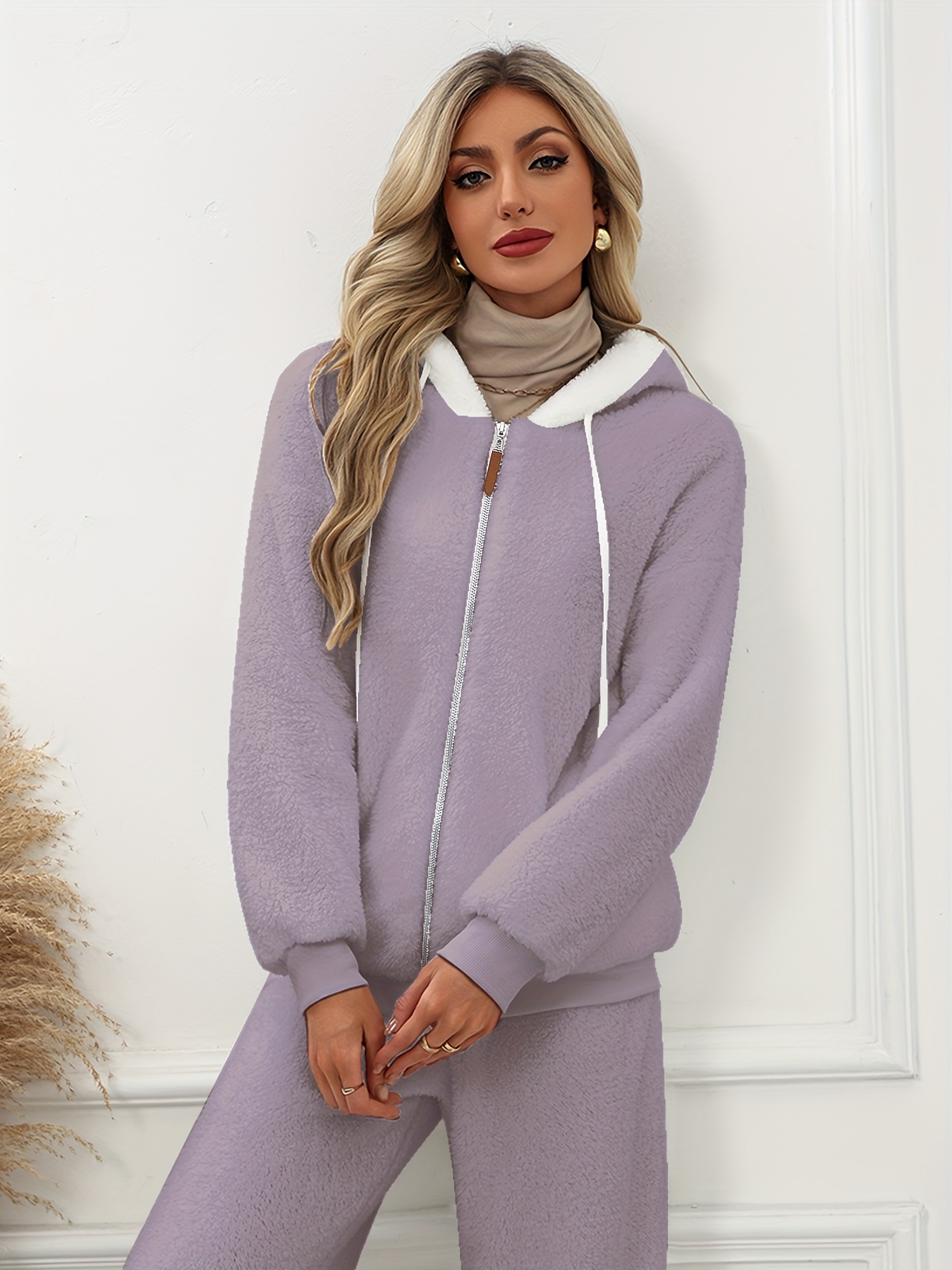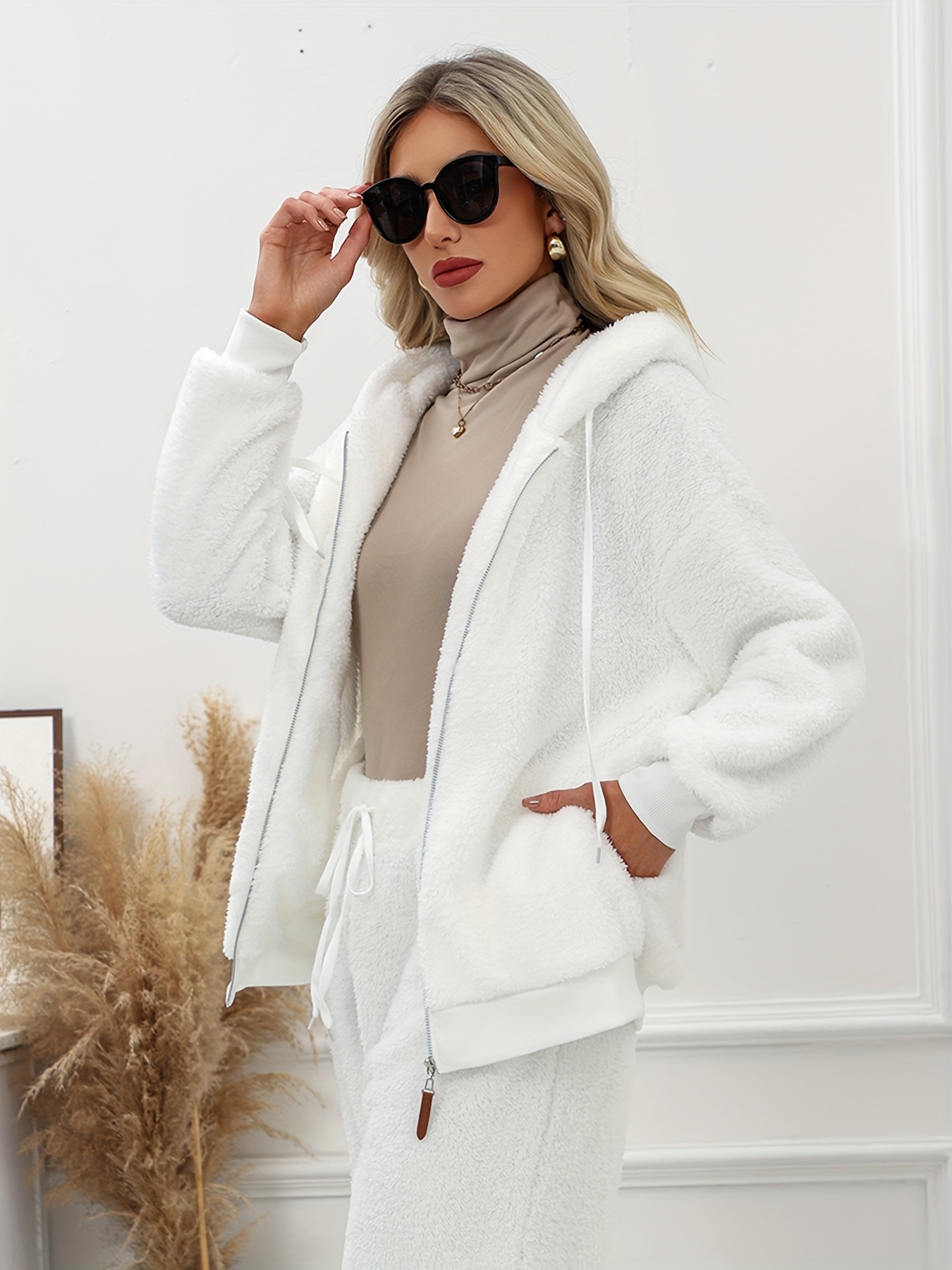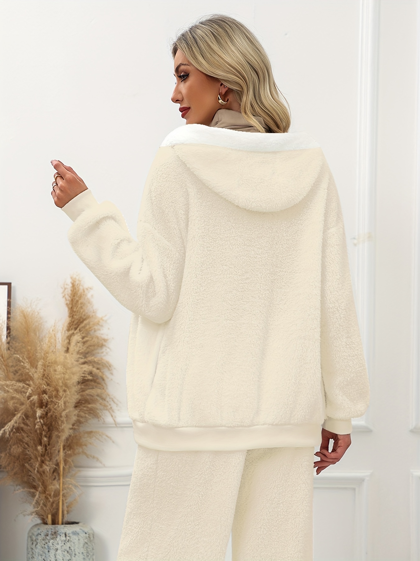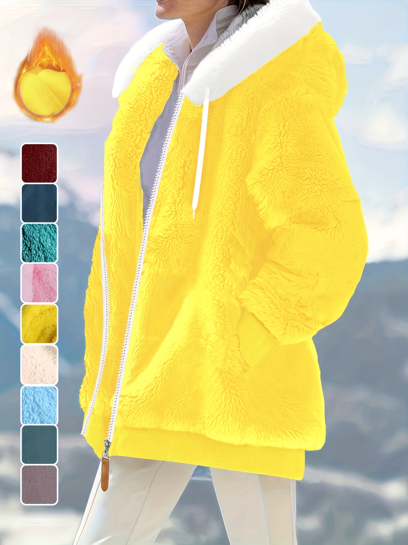 Plus Size - Women'S Cozy Fleece-Lined Hooded Jacket - Oversized Zip-Up with Drawstring, White, All-Season Comfort, Casual Style, Casual Winter Wear | Oversized Hooded Jacket | Zippered Hoodie, Winter Hoodie