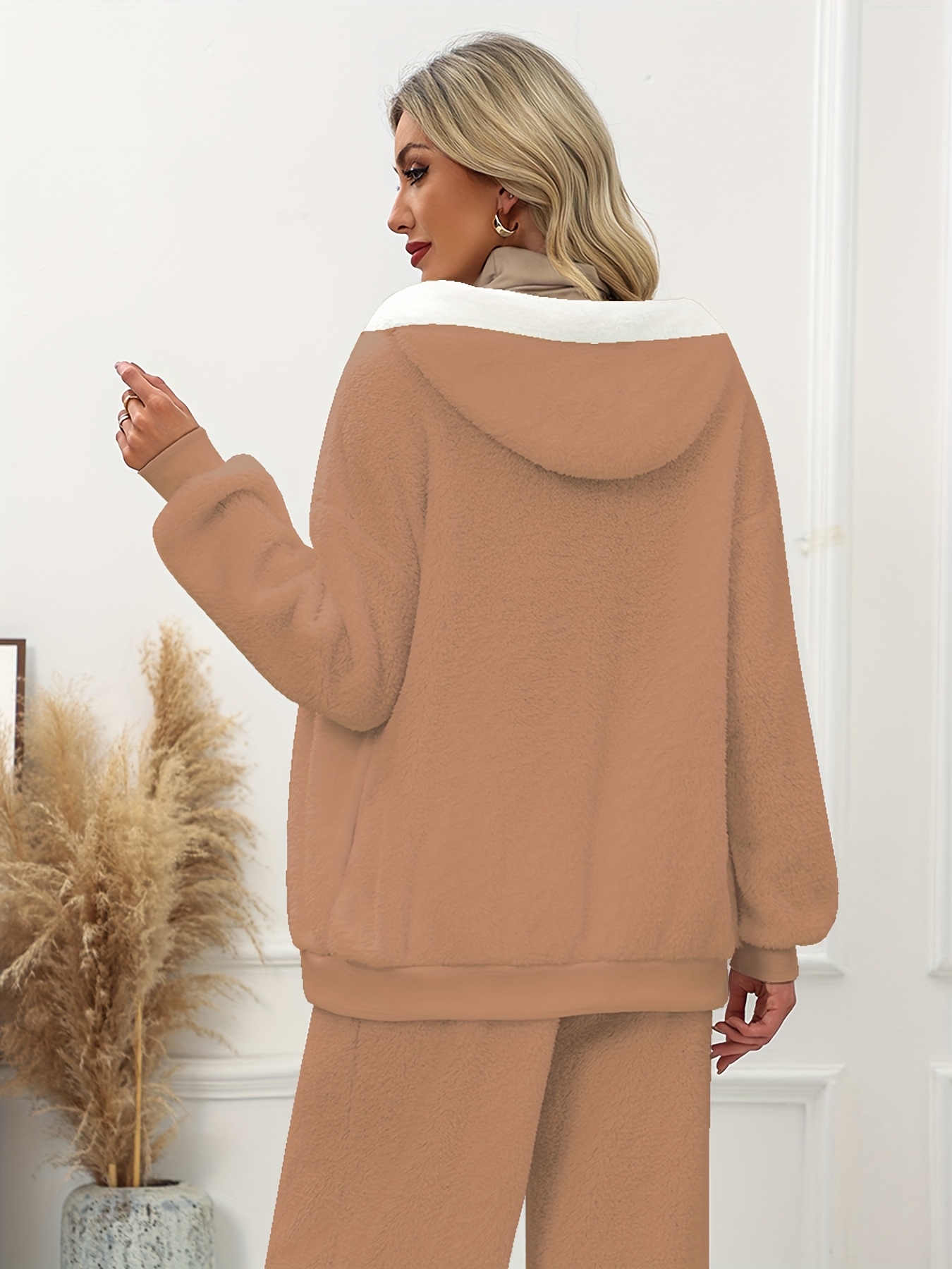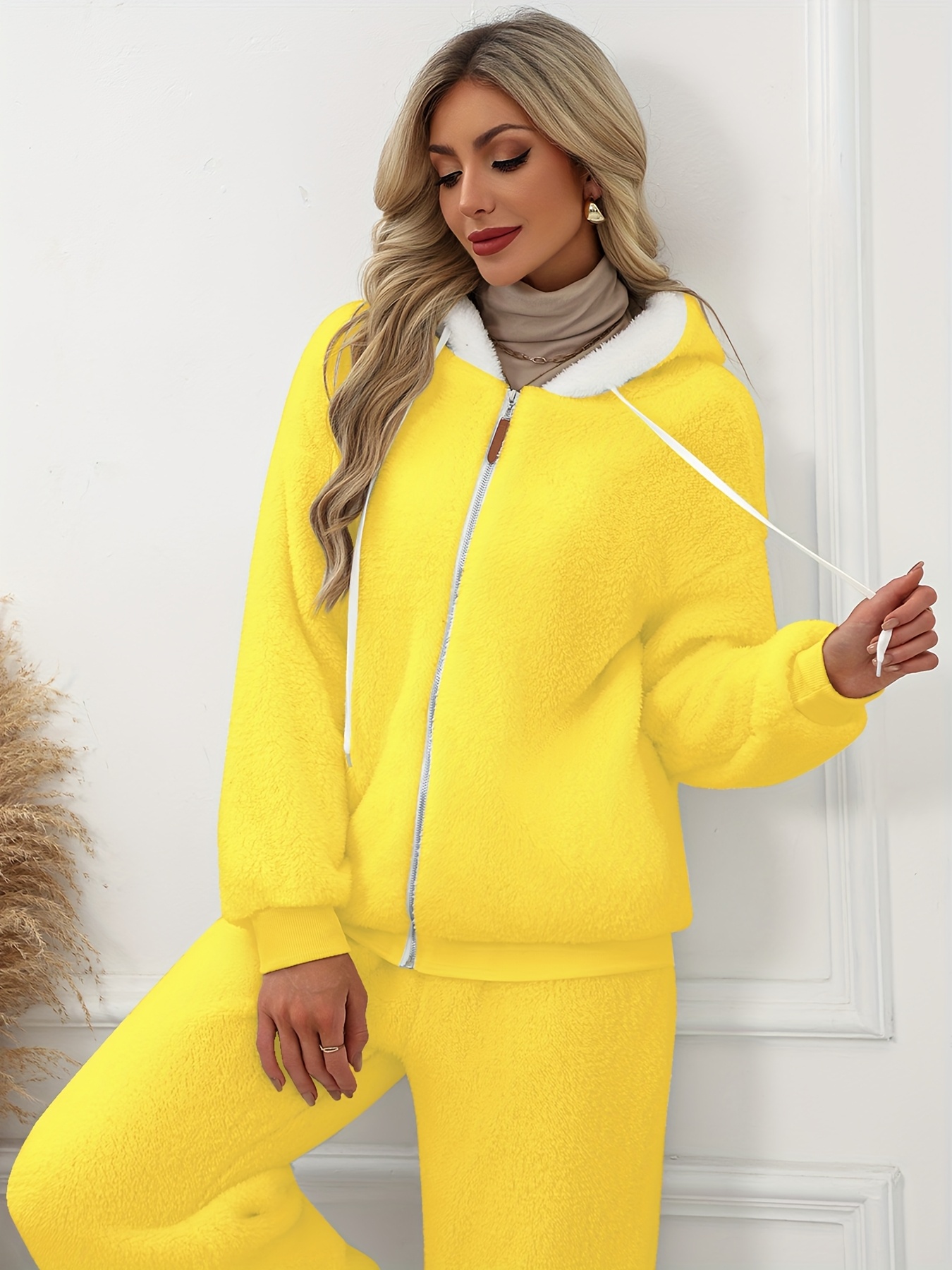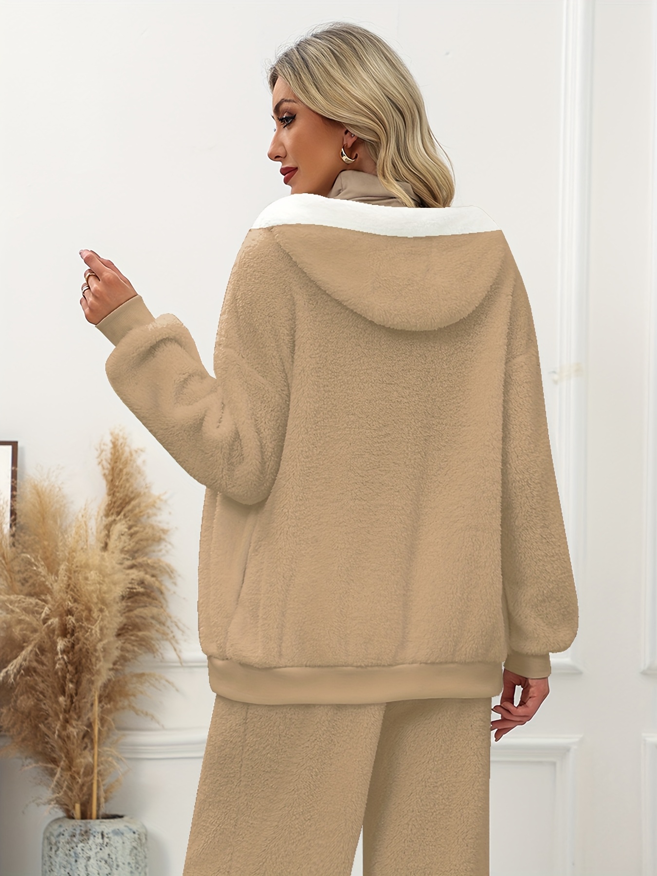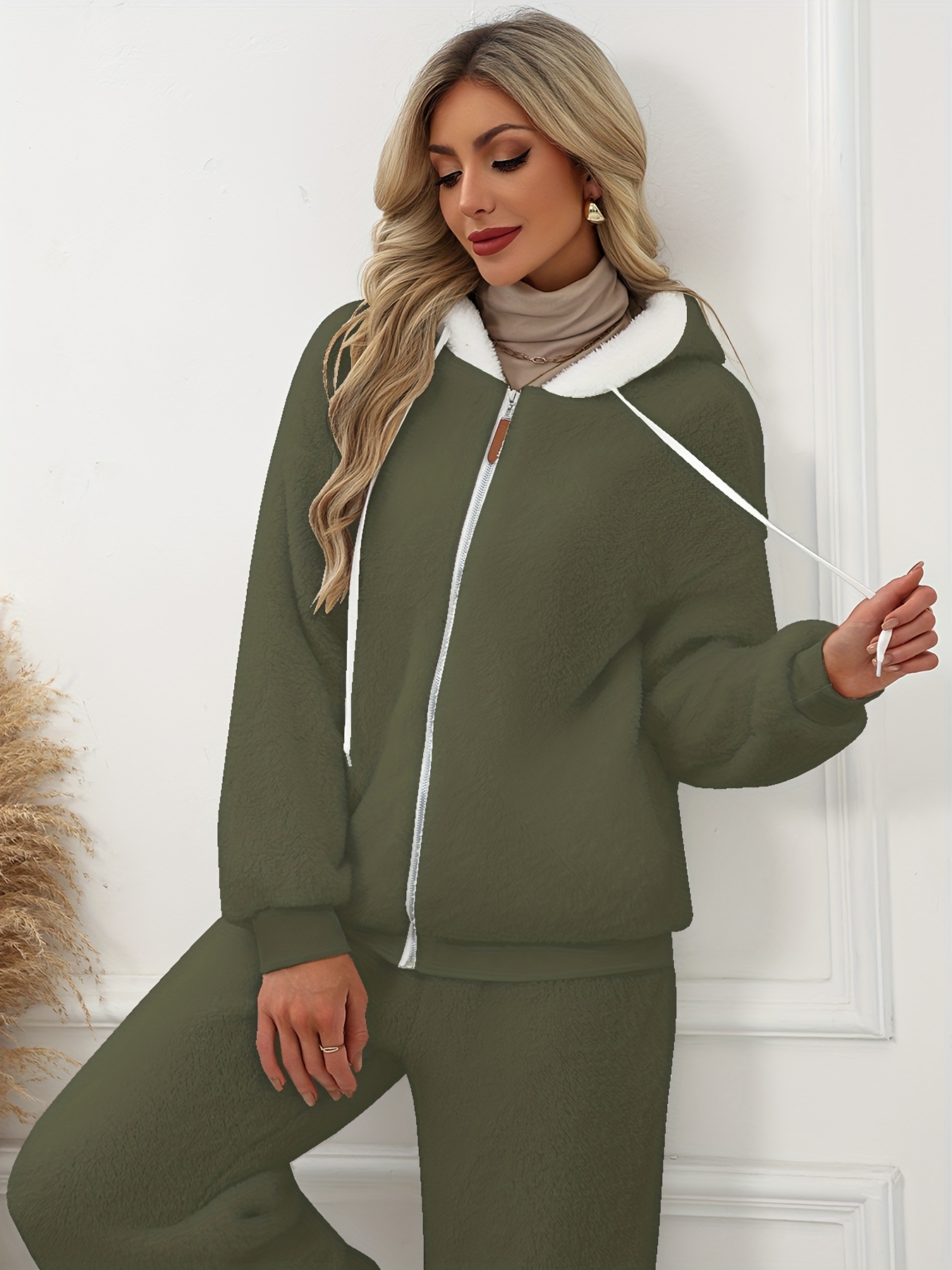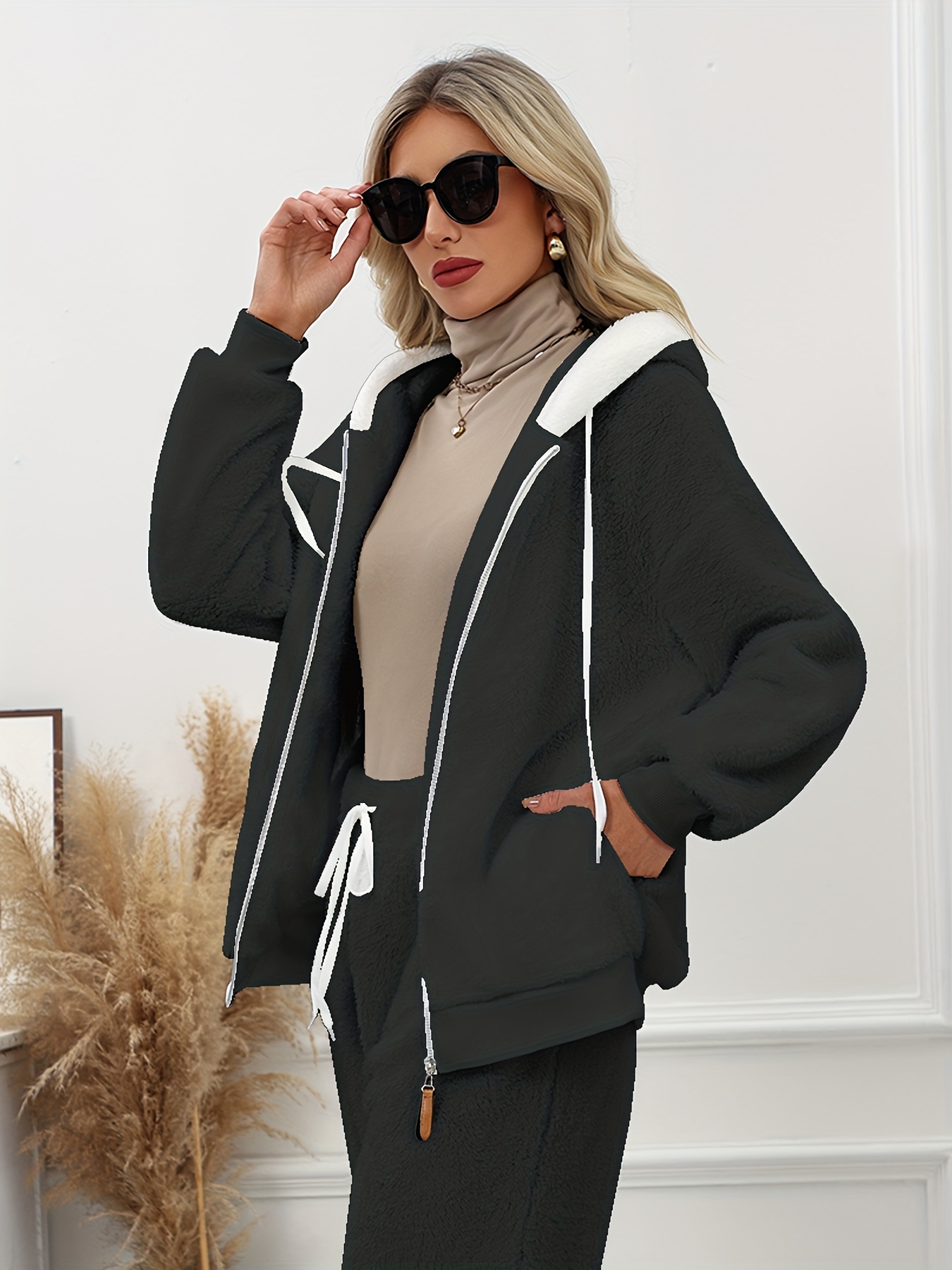 Plus Size - Women'S Cozy Fleece-Lined Hooded Jacket - Oversized Zip-Up with Drawstring, White, All-Season Comfort, Casual Style, Casual Winter Wear | Oversized Hooded Jacket | Zippered Hoodie, Winter Hoodie