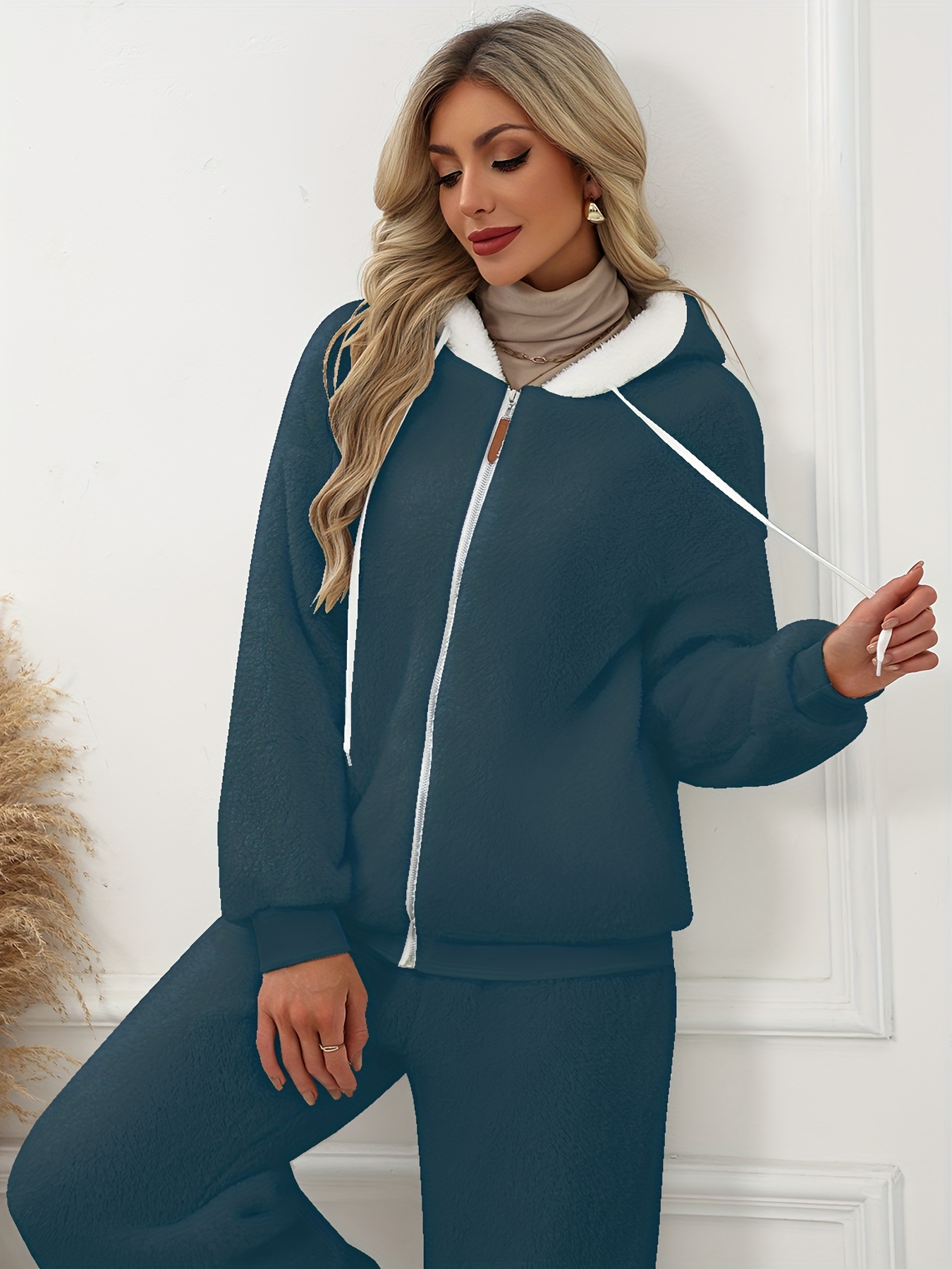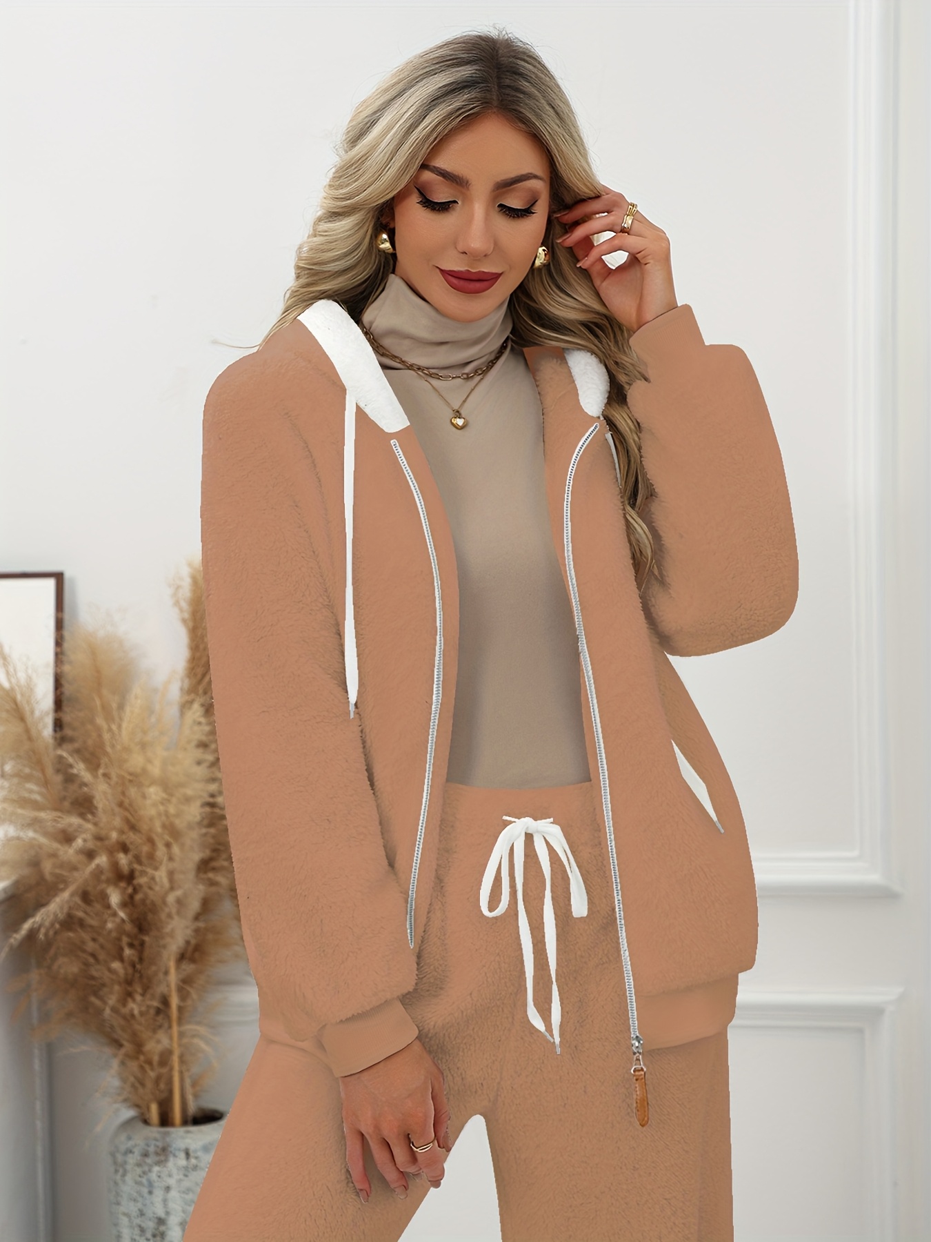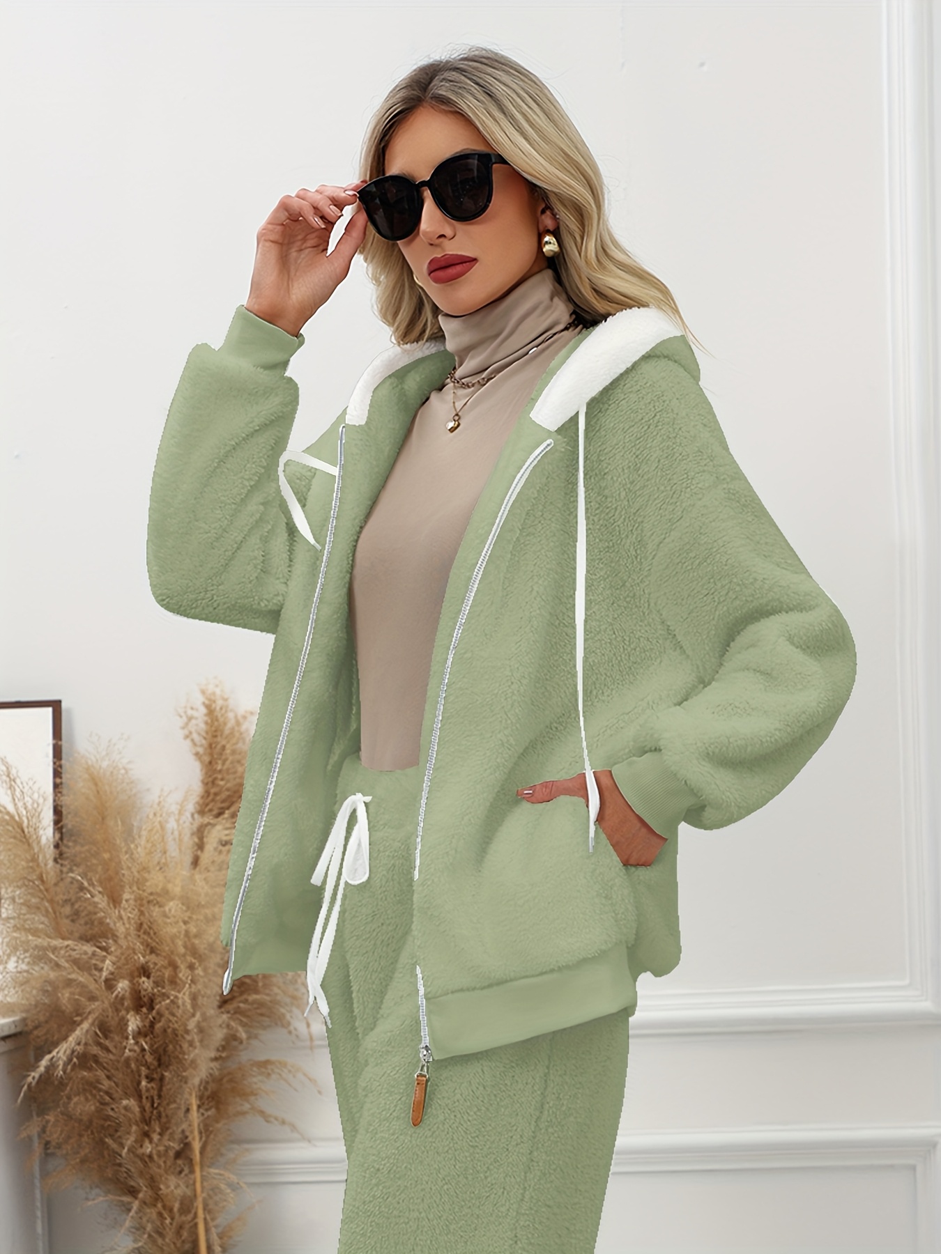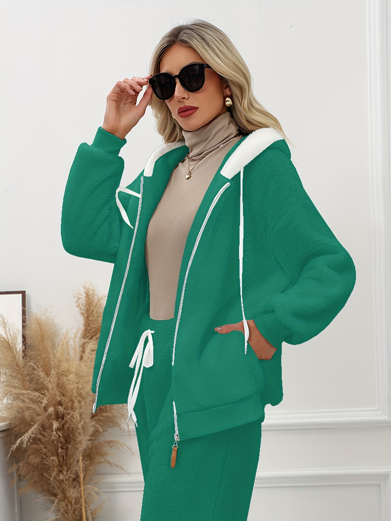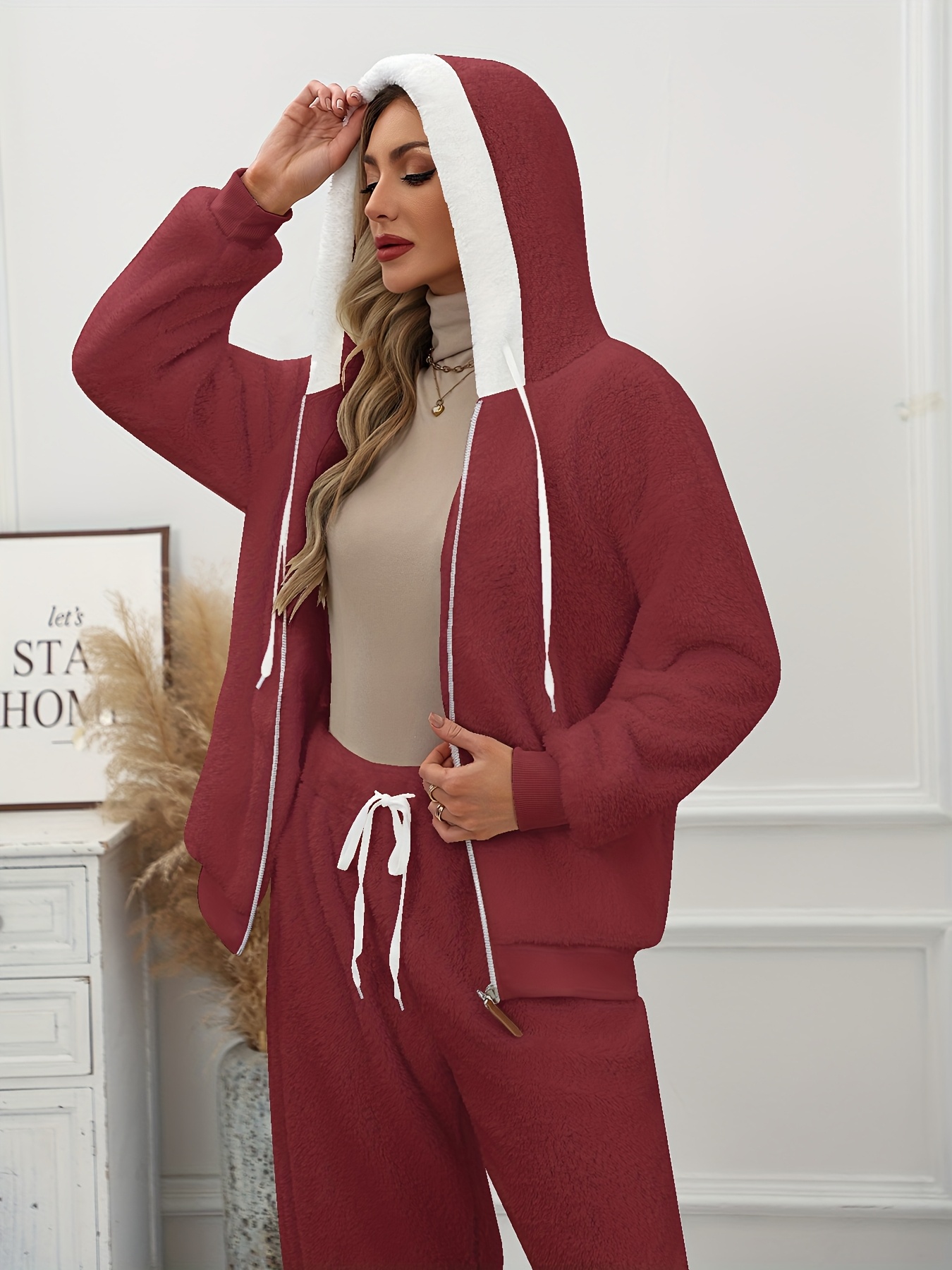 Plus Size - Women'S Cozy Fleece-Lined Hooded Jacket - Oversized Zip-Up with Drawstring, White, All-Season Comfort, Casual Style, Casual Winter Wear | Oversized Hooded Jacket | Zippered Hoodie, Winter Hoodie