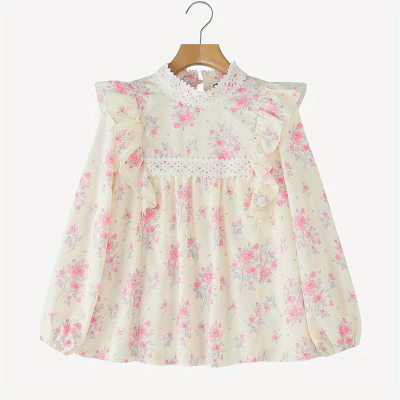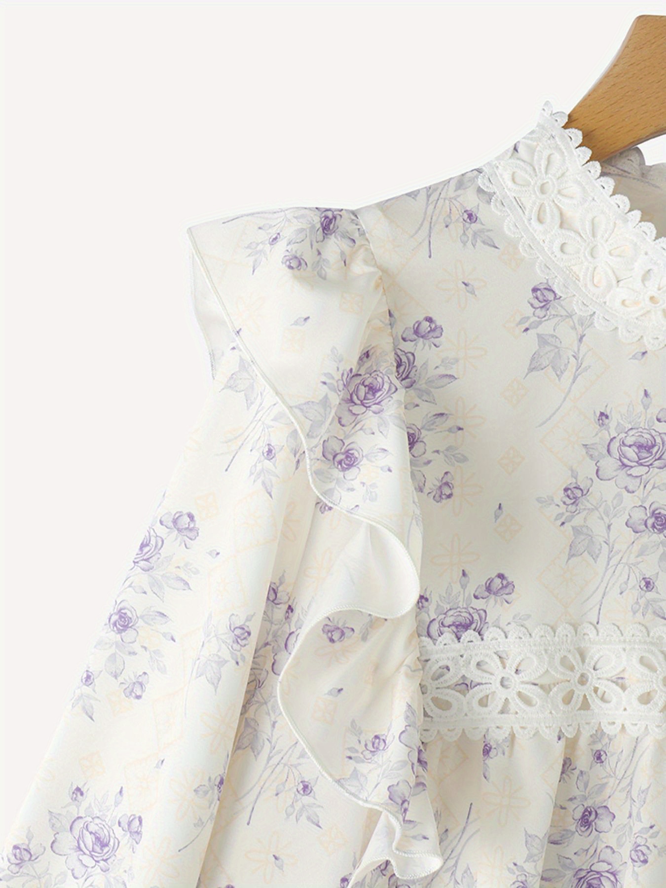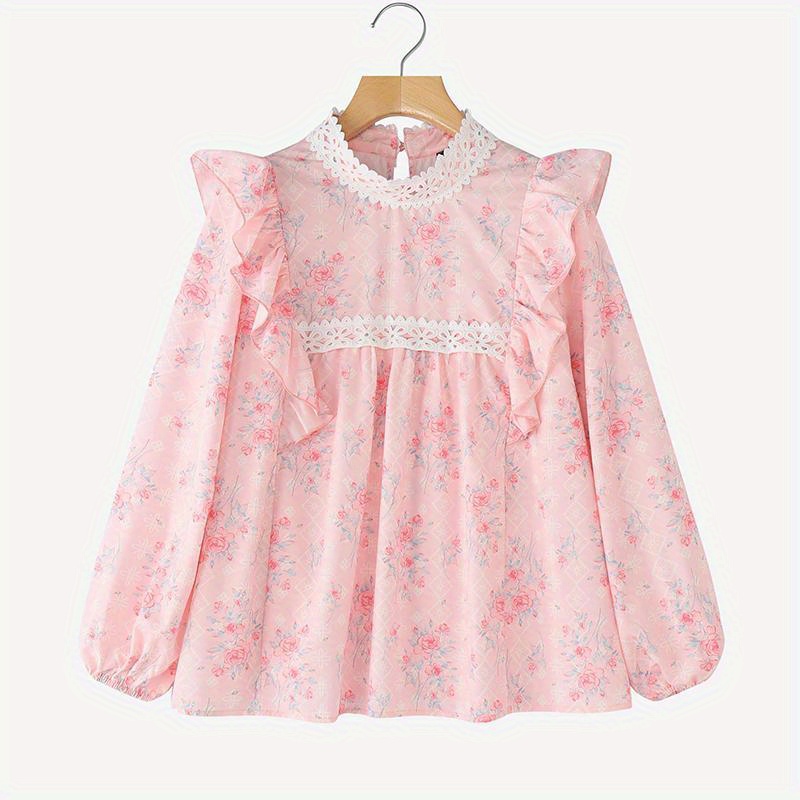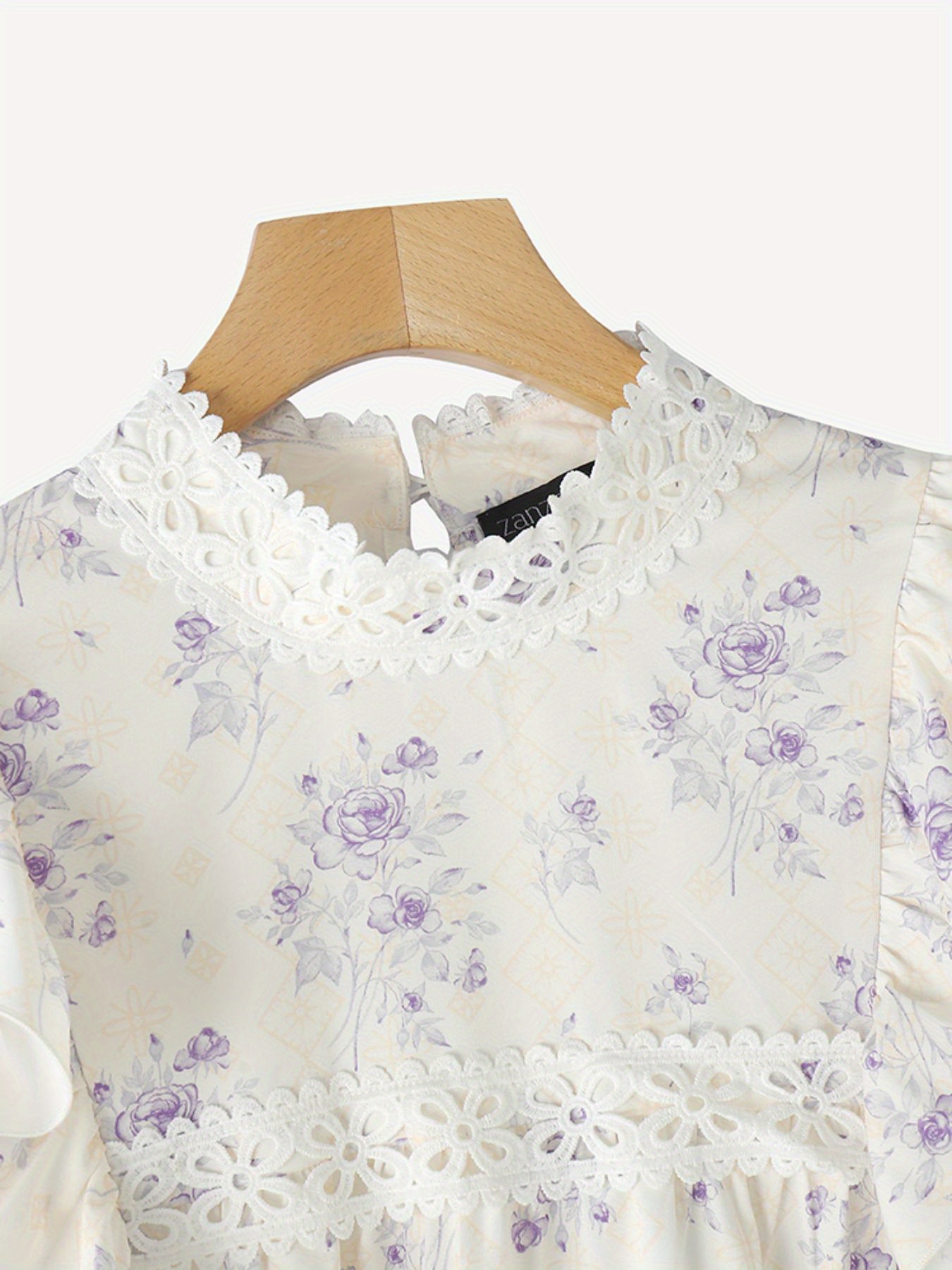 [Floral Lace Blouse] Plus Size, Women's Plus Size Blouse - Floral Lace Accent Shirt With Stand Collar - Lightweight Elegant Office & Party Top - Non-See-Through Formal & Casual Outfits - Machine Washable Women's Clothing By ZANZEA