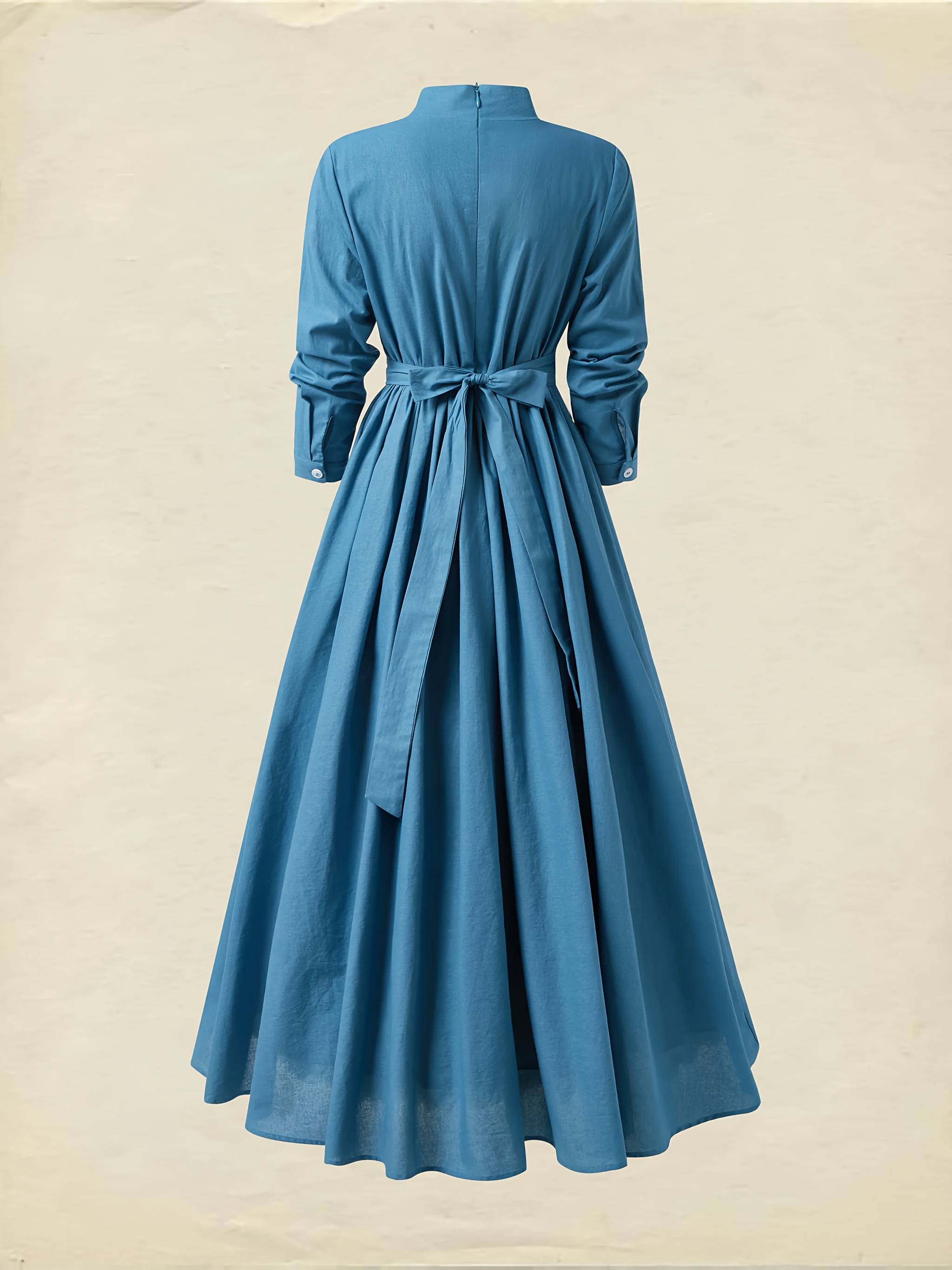 Elegant French-Inspired Vintage-Inspired V-Neck Long Sleeve Maxi Dress with Button Detail - Light Blue, Flowing A-Line Silhouette, Perfect for Summer, Adult Women'S Fashion, Casual Elegance|Vintageinspired Dress|Button Detail Dress, Wedding Guest Dresse Women Plu Size, Wedding Guest Outfit Women Plu Size, Wedding Guest Dresse Women Size, Plu Size Wedding Guest Dresse, Plu Size Women Dresse, Dress Women Offer, Vintage Dress For Women, Casual And Elegant Dress For Women, Summer Dress