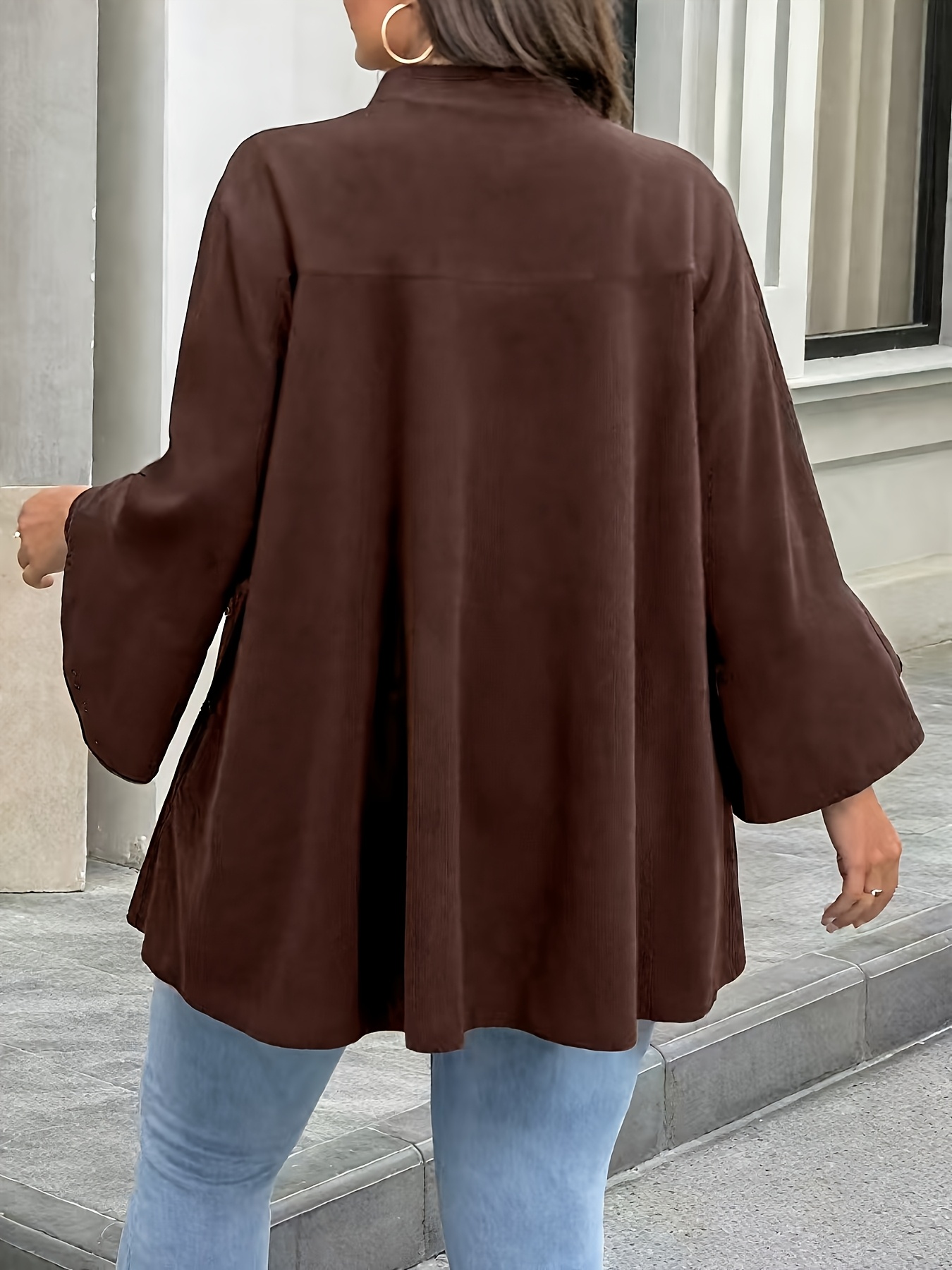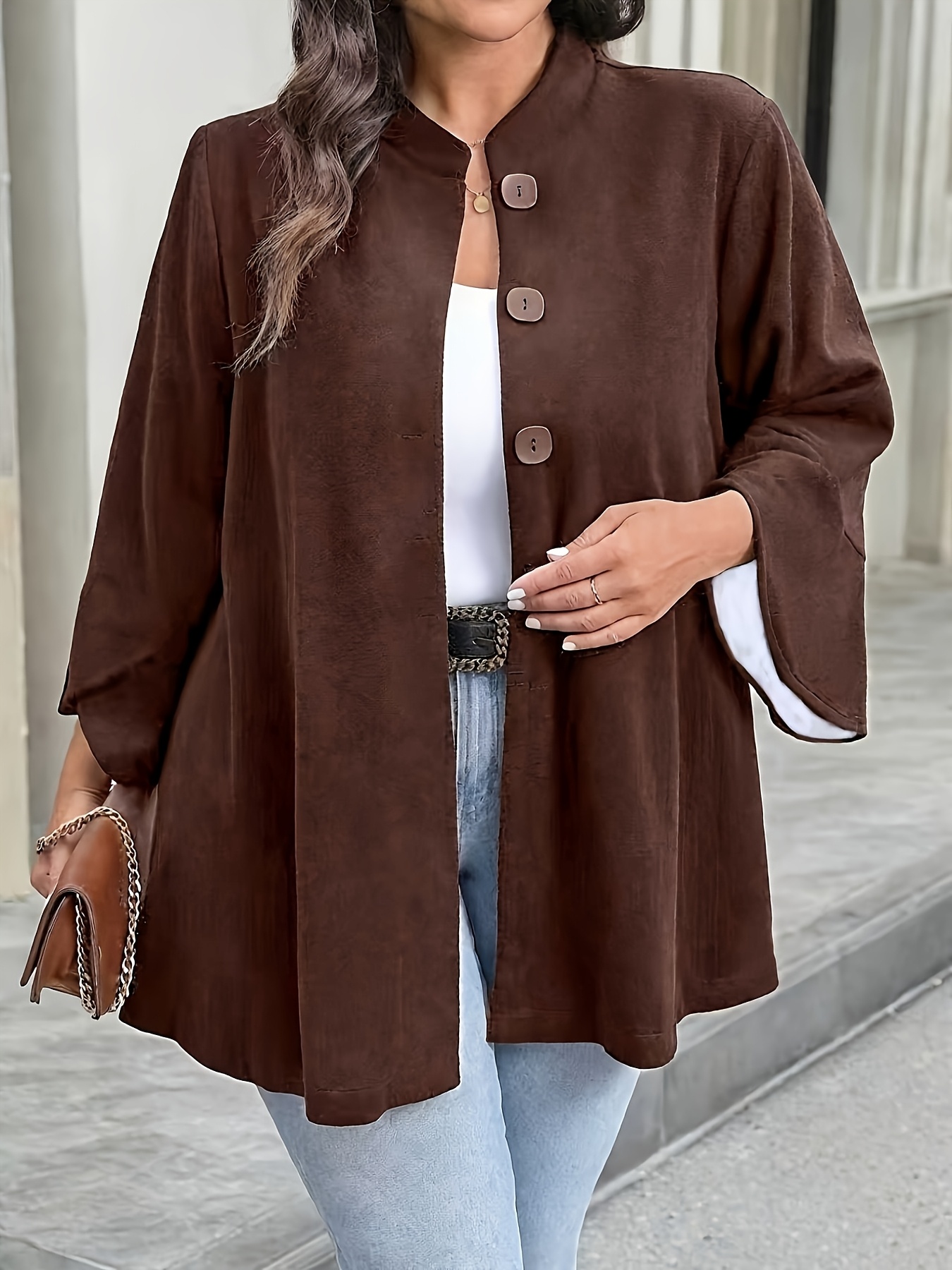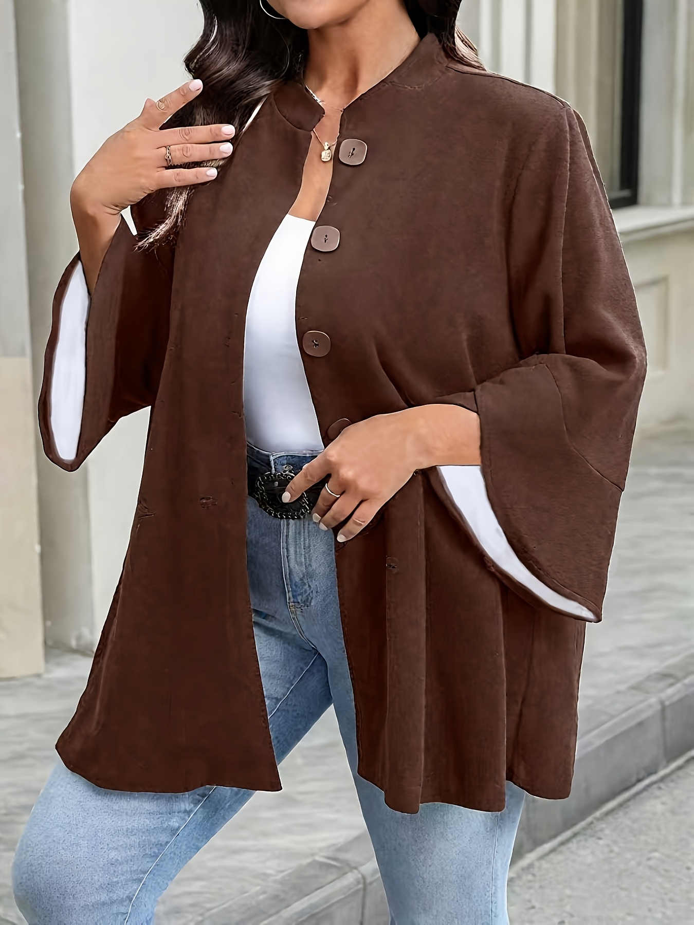 Plus Size, Women's Plus Size Oversized Bell Sleeve Jacket - Collar Coat, Elegant Casual Loose-Fit Blazer for Spring/Fall, Wide-Leg Button Front (Curvy-Friendly) - to Weekend Outerwear
