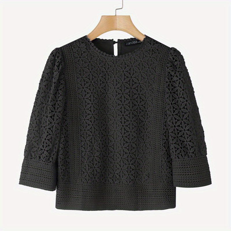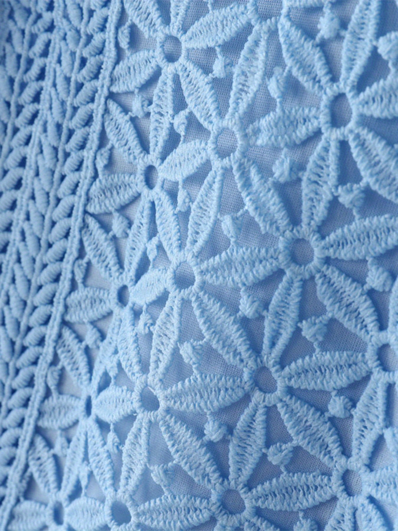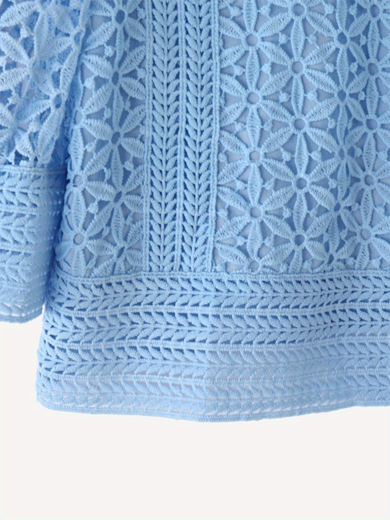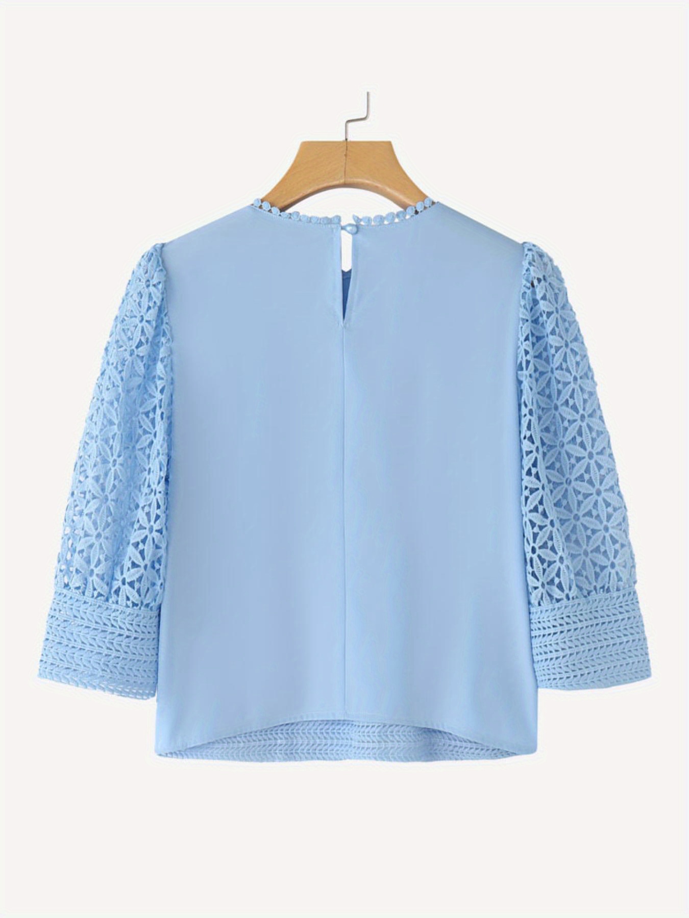 Plus Size, ZANZEA Women's Lace Patchwork Blouse - Semi-Sheer Short Sleeve Top with Round Neck, Soft Pastel Blue Summer Shirt, Machine Washable Elegant Casual & Formal Wear (Lightweight Layered Outfit Essential)