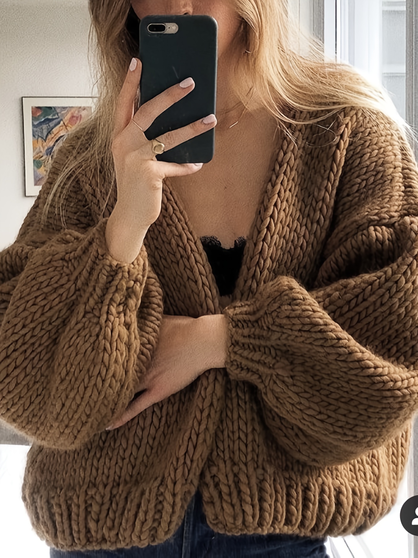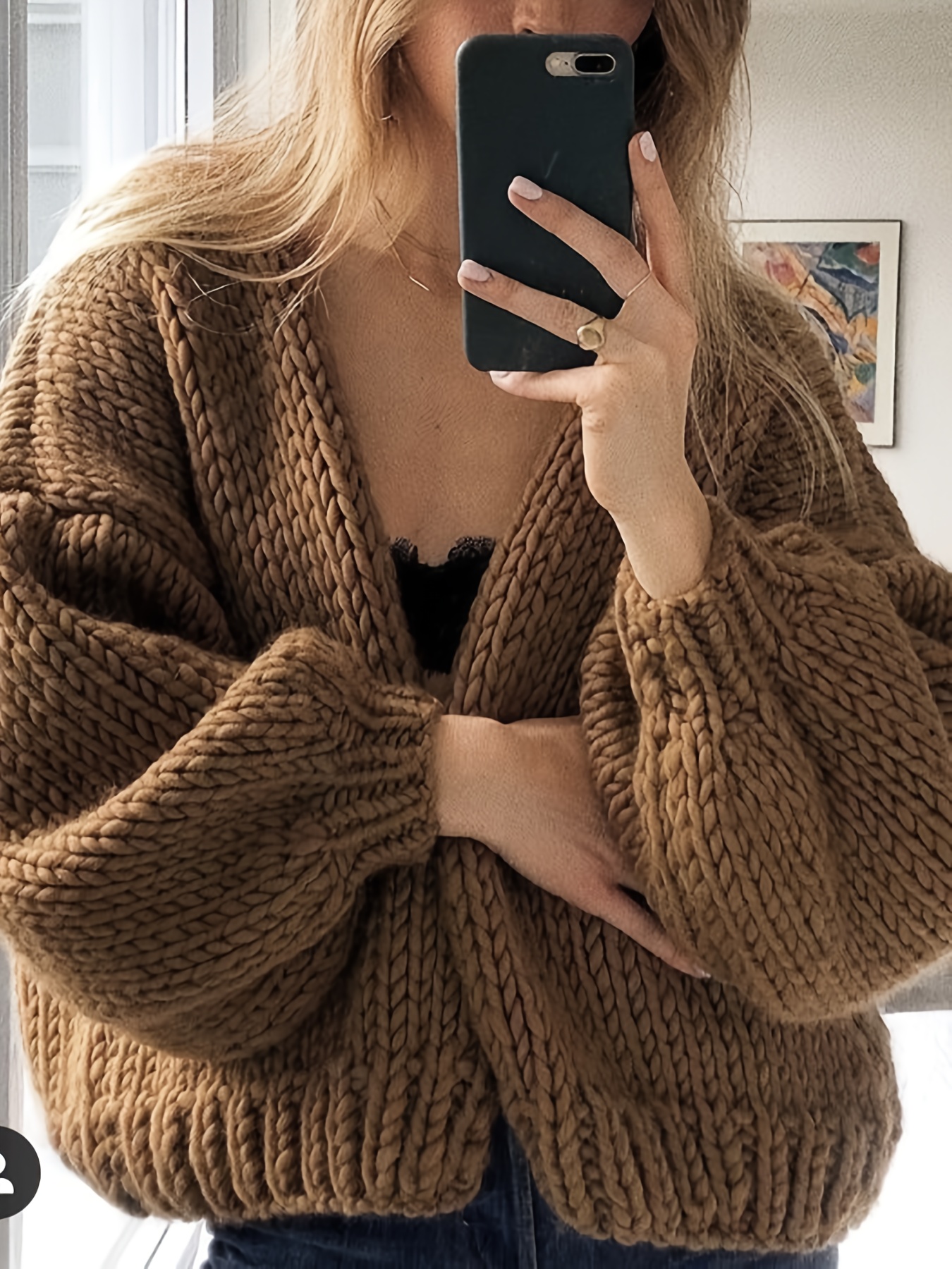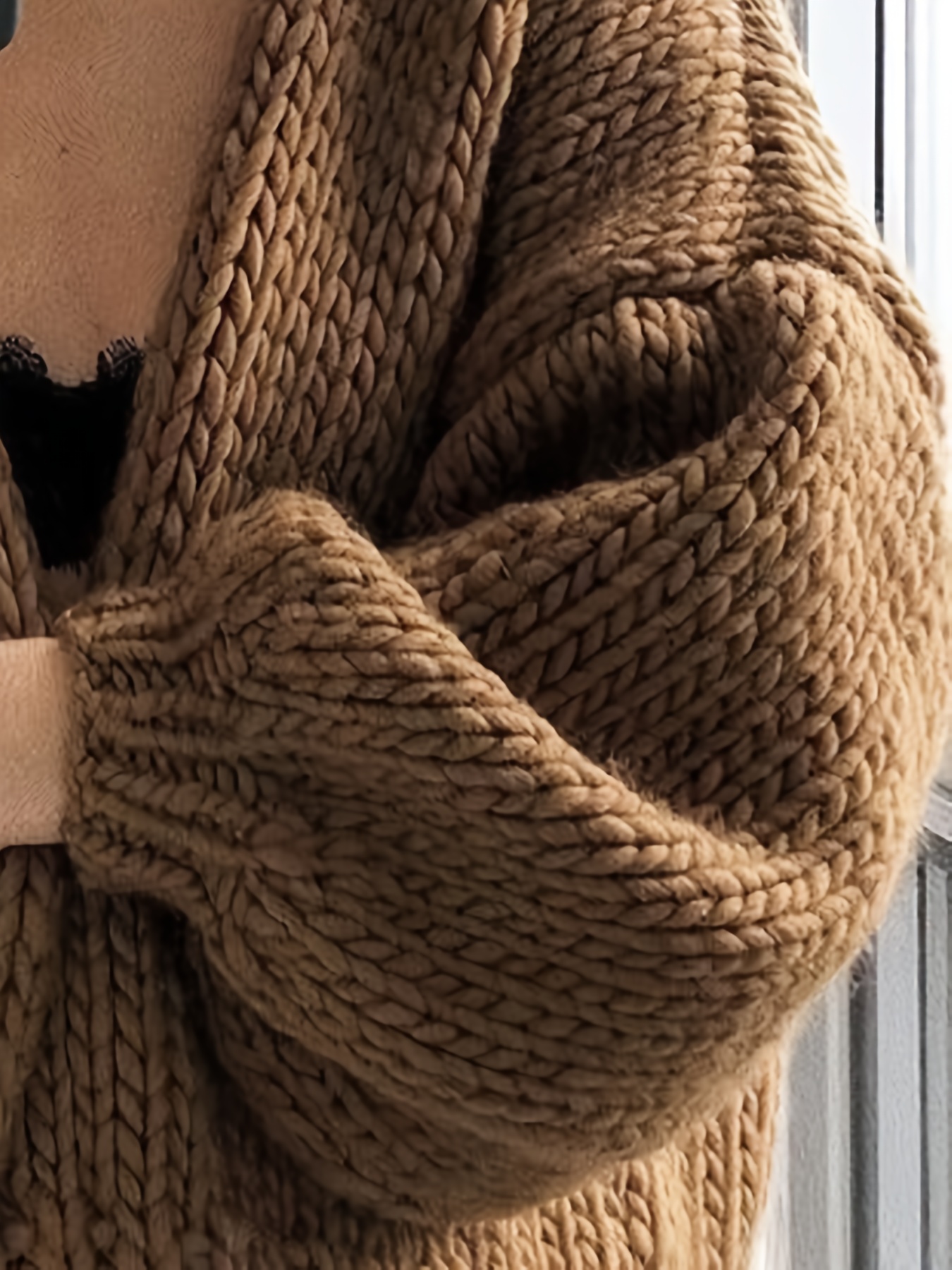 Women's Elegant Sweater Coat - Longline Tunic Jacket with Collar & Tunic Length, Soft Warm Winter Blouse for Fall Winter Layering, Solid Brown (Multi-Color Options Available) - Hand Wash or Dry Clean, H-Line Silhouette, Smooth Texture, Structured Fit, No Buttons, No Belt, All-Season Wear, Chic & Comfortable for Daily & Formal Use, Suitable for Layering or Standalone Use, Sweater Jacket for Women, Cropped Sweater, Winter Cardigans, Coats for Women, Oversized Sweater,
