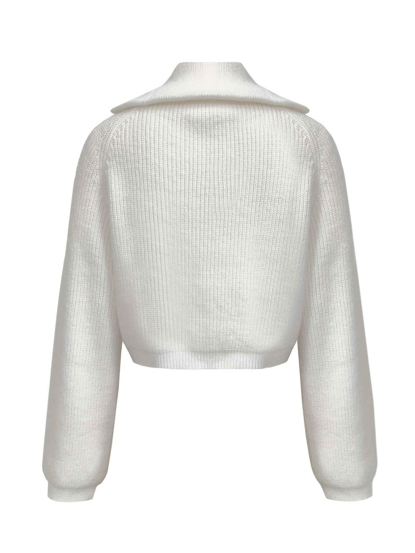 Women's Elegant Ribbed Zip-Up Sweater - Long Sleeve Stand Collar Short Length Slim Fit, Solid Color All-Season Versatile Layering Piece